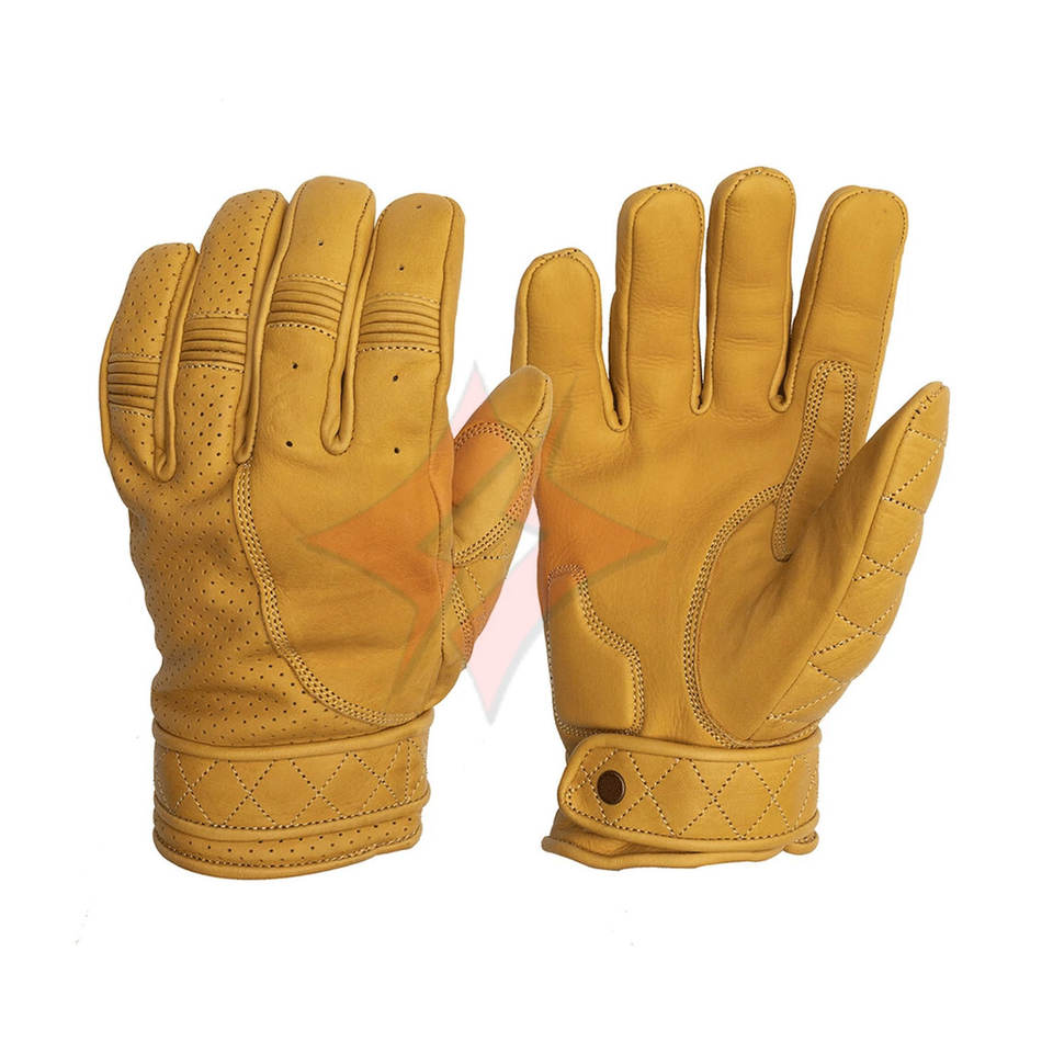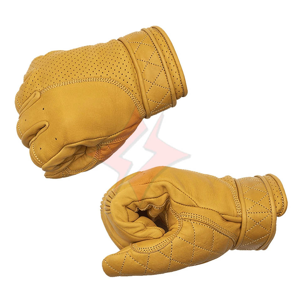 Golden Yellow Leather Short Classic Cruiser Motorbike Gloves Unisex Genuine Leather Motorcycle Gloves Waterproof UV Sports