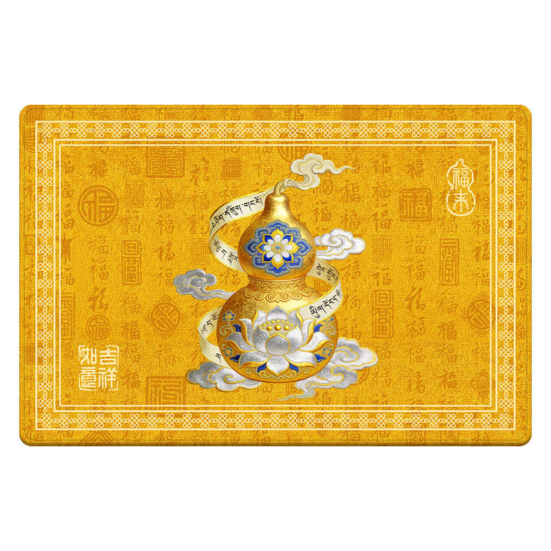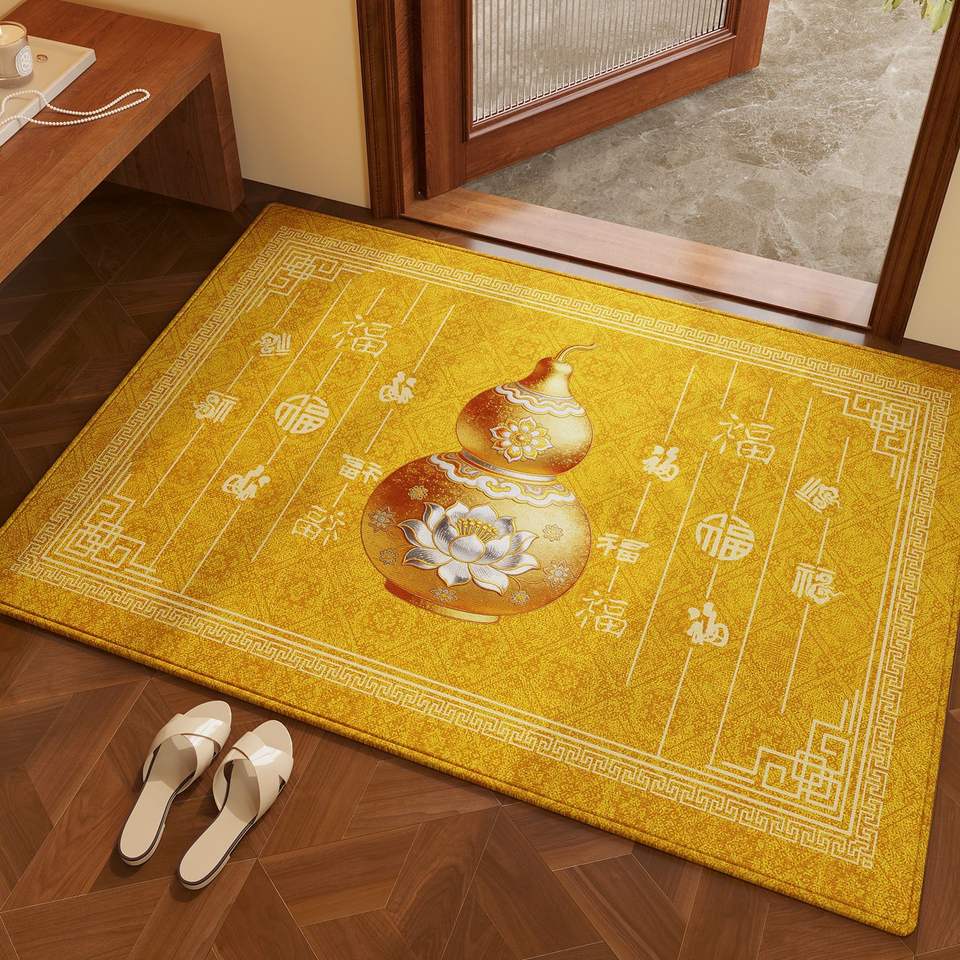 พรมเช็ดเท้าสีเหลืองทองลายมงคล รูปทรงสี่เหลี่ยมผืนผ้า ผลิตจากโพลีเอสเตอร์ กันลื่น ใช้ได้ทั้งภายในและภายนอกอาคาร ลายดอกไม้และรูปทรงเรขาคณิต