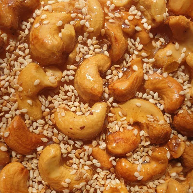 กระดาษเม็ดมะม่วงหิมพานต์สีทองและธรรมชาติสูตรครอบครัวทำในเวียดนาม