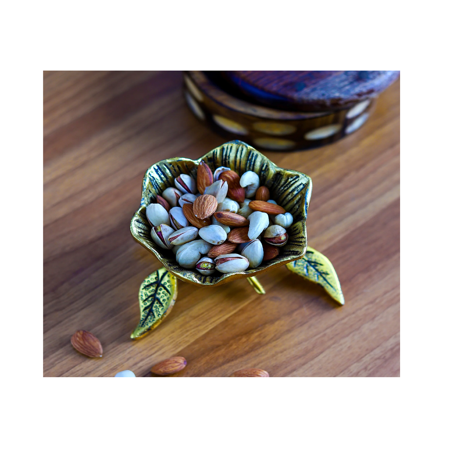 ชามผลไม้แห้งทำจากทองเหลืองสีทองสำหรับเสิร์ฟสลัดมาใหม่ชามผลไม้แห้งทำด้วยมือแบบคลาสสิกเก็บบ้านพร้อมช้อน
