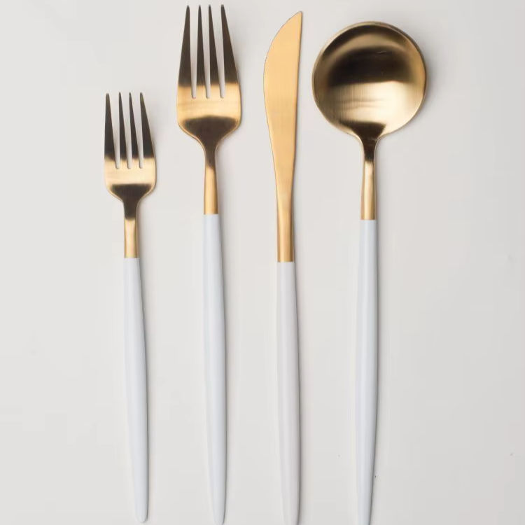 ชุดช้อนส้อมสแตนเลสคุณภาพพรีเมียม ทนทาน สีทอง ออกแบบมาสำหรับใช้ในครัวเรือน ร้านอาหาร โรงแรม บริการอาหาร และการบริการอาหารประจำวัน