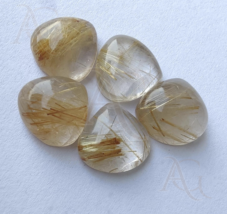 พลอยหลังเบี้ยทรงกลมทำจากแร่ทองทำจากแร่ควอทซ์สีทองขนาด8มม. ขายส่ง