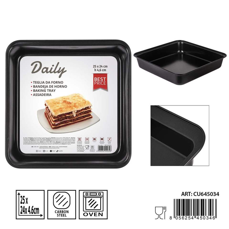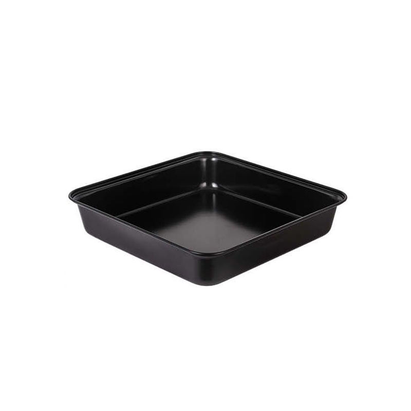 ถาดอบสี่เหลี่ยมเหล็กคาร์บอนเคลือบสีทอง25x24x4.6ซม. 0.4มม. เตาอบไมโครเวฟ/เครื่องล้างจานสีดำปลอดภัยสำหรับเค้กขนมปังเค้ก