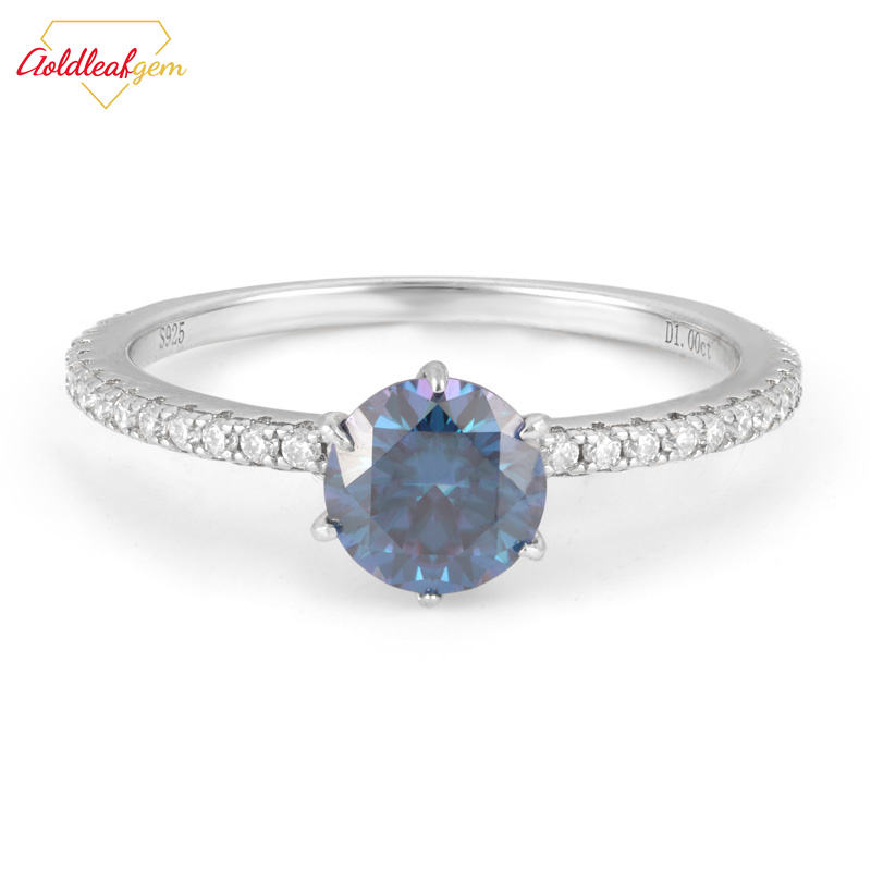แหวนทองคำขาวประดับเพชรโมอิสซาไนต์หลากสี ตัวเรือนเงินแท้ S925 ทรงกลม น้ำหนัก 1 กะรัต 2 กะรัต 3 กะรัต ระดับความสะอาด D VVS