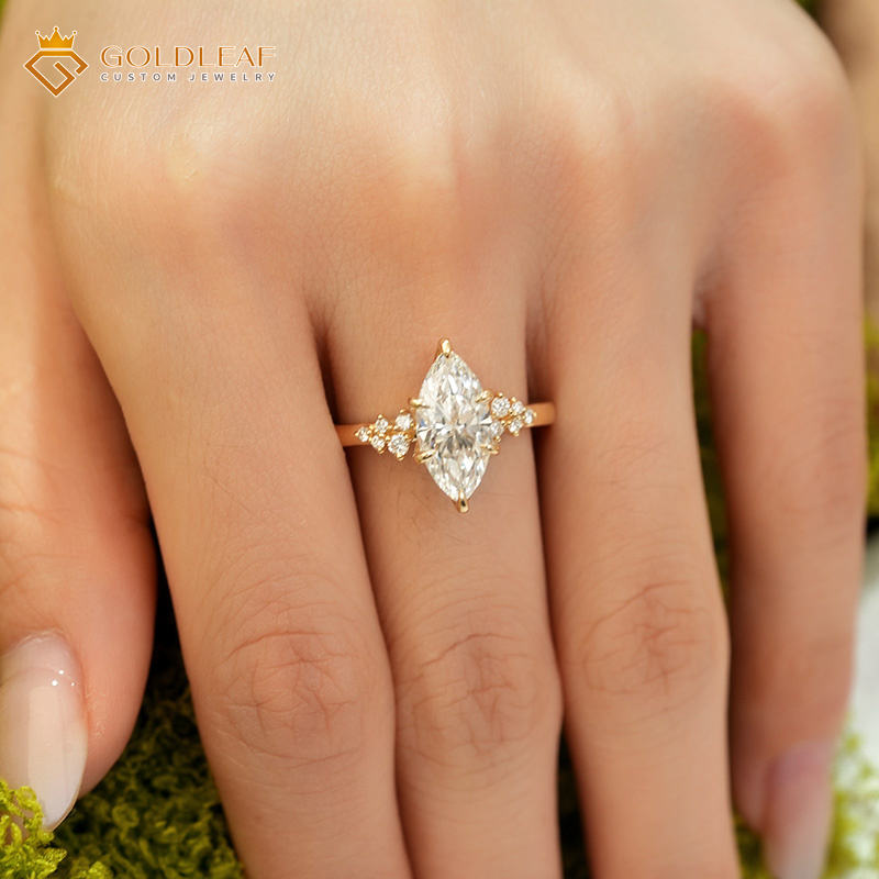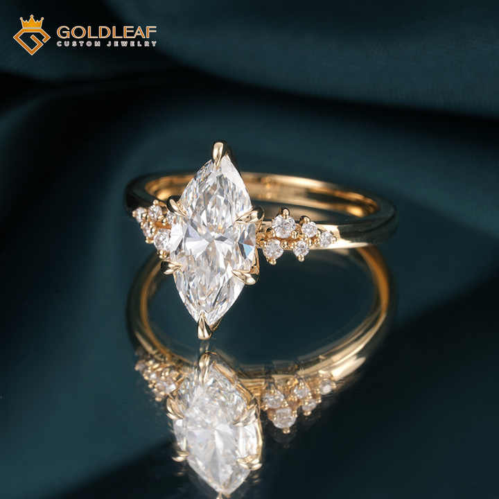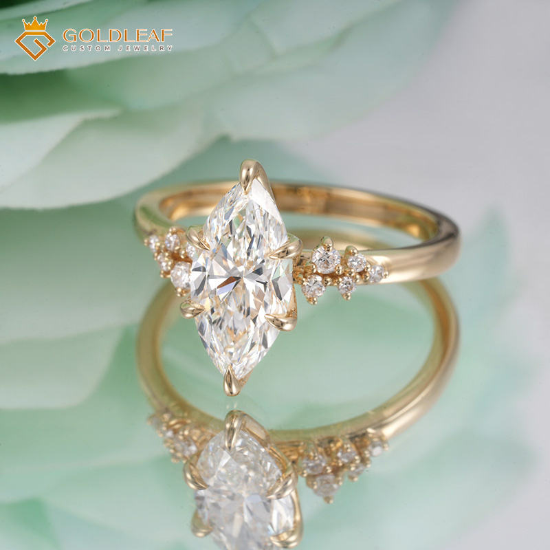 แหวนทองคำ 18K ประดับเพชรทรงมาร์คีส์ เพชรเลี้ยงในห้องปฏิบัติการ พร้อมใบรับรอง IGI ของ Goldleaf Custom เหมาะสำหรับงานแต่งงาน งานเลี้ยง และเป็นของขวัญวันเกิด