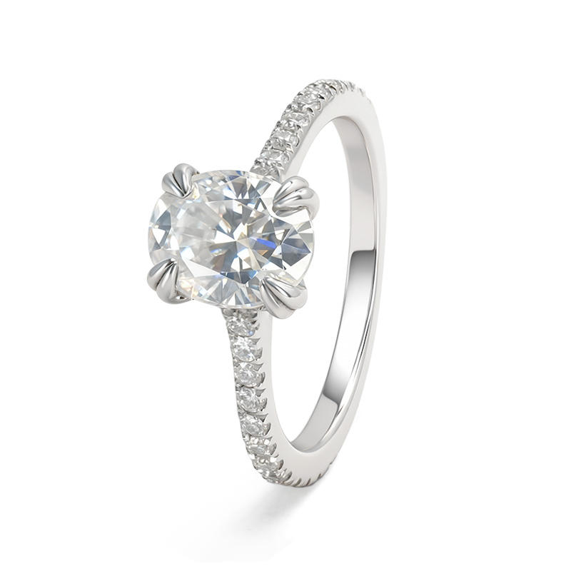 แหวนแต่งงานครบรอบสำหรับทุกเพศ รุ่น Goldleaf Customize Luxury เงินแท้ 925 ประดับด้วยเพชรโมอิสซาไนต์ทรงรี 2 กะรัต ตัวเรือนแบบ Prong Setting ระดับความสะอาด D VVS พร้อมใบรับรอง