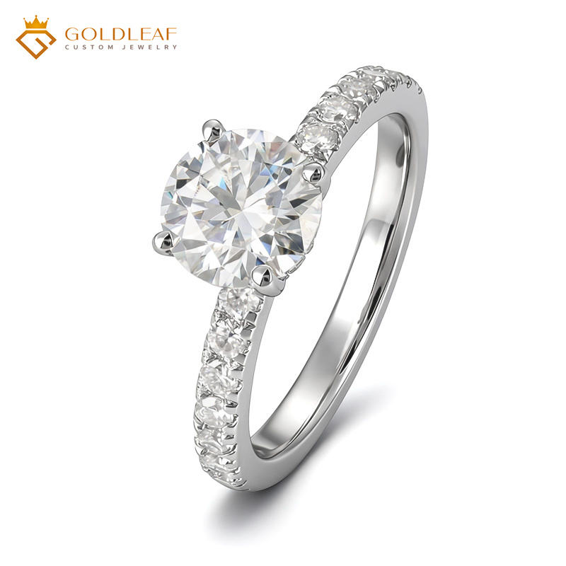 แหวนทองคำเปลวสั่งทำพิเศษ เงินแท้ S925 ประดับเพชรโมอิสซาไนต์ทรงกลม 1 กะรัต 2 กะรัต 3 กะรัต D VVS