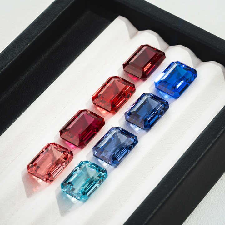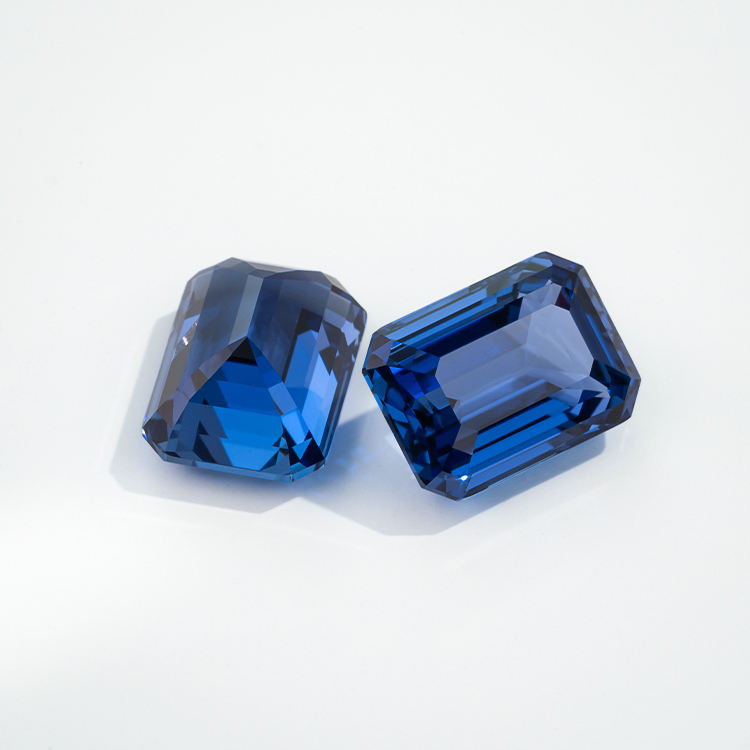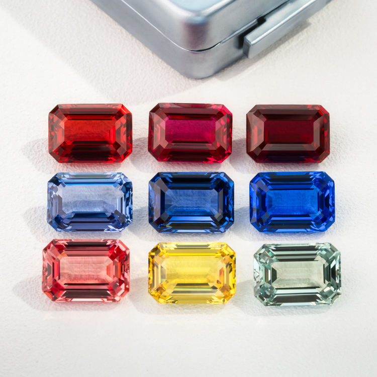 พลอยแซฟไฟร์สีสังเคราะห์ทรงมรกตแบบหลวมสำหรับทำเครื่องประดับ ขายส่ง