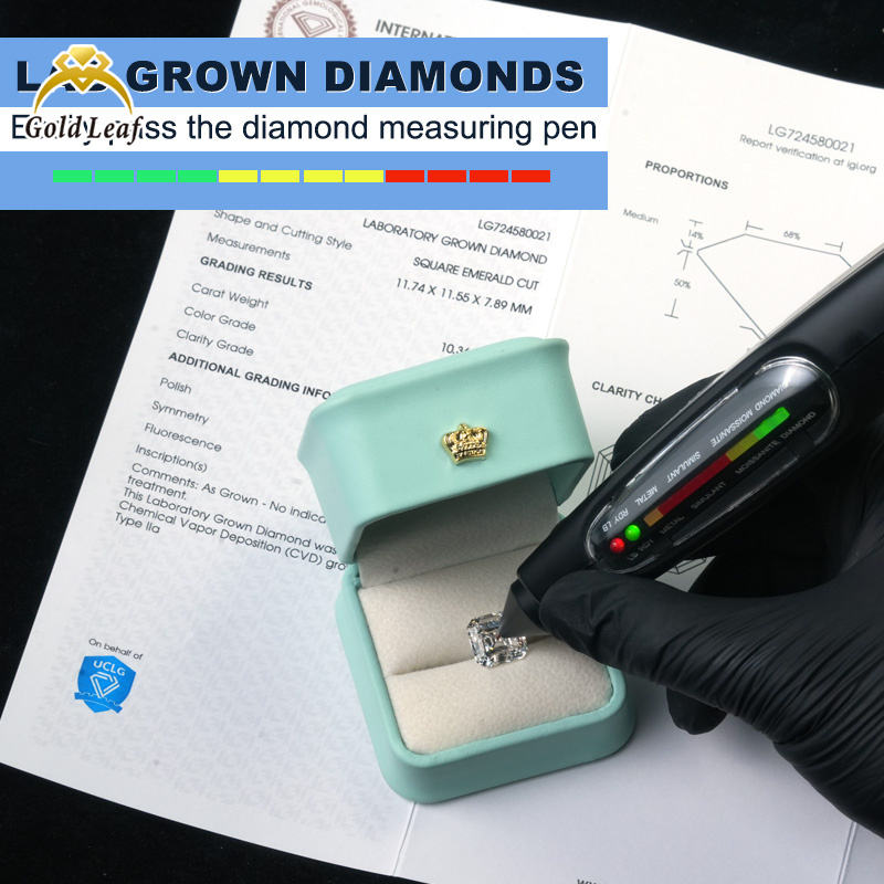 เพชรทรงแอสเชอร์ Goldleaf IGI สี DEF ขนาด 1-7 กะรัต คุณภาพ VVS VS ผลิตด้วยวิธี HPHT CVD ได้รับการรับรอง เหมาะสำหรับทำเครื่องประดับ