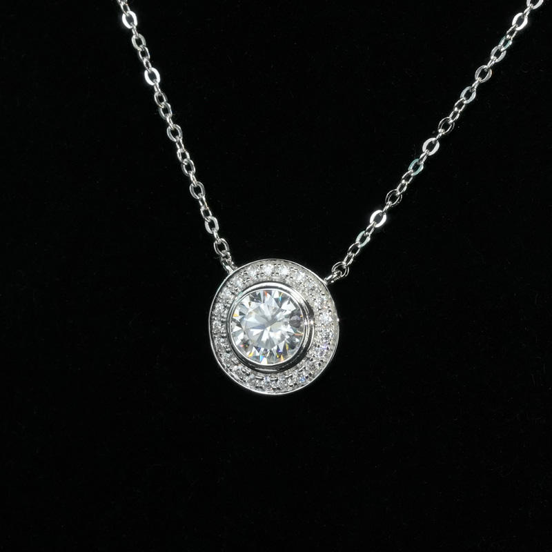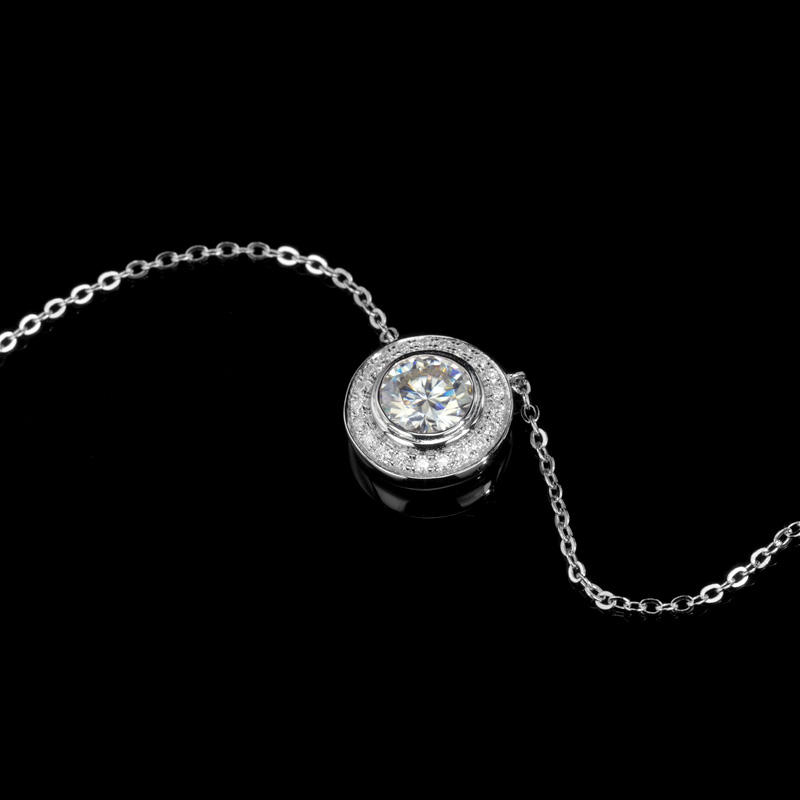 จี้เพชรโมอิสซาไนต์ทรงกลม 1 กะรัต ขายส่งจาก Goldleaf สร้อยคอเงินแท้ 925 ชุบทอง 18K ดีไซน์ทันสมัย สำหรับผู้หญิง เหมาะเป็นของขวัญสำหรับงานปาร์ตี้