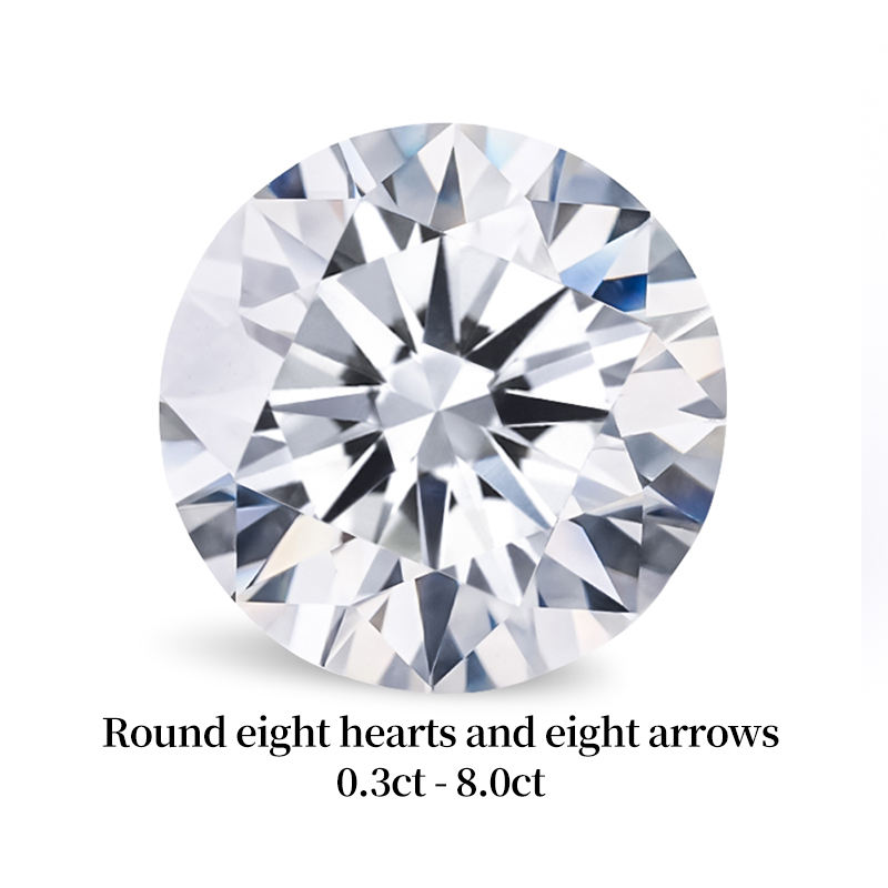 ขายส่งแบบดรอปชิปปิ้ง โมอิสซาไนต์ทรงกลมเจียระไนแบบบริลเลียนท์ 8 หัวใจ 8 ลูกศร ขนาด 3-10 มม. สี D ระดับ VVS