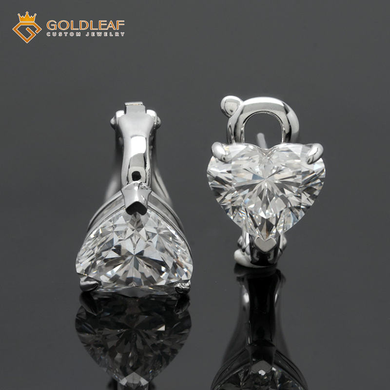 เครื่องประดับโกลด์ลีฟเจม ต่างหูเพชรทรงหัวใจ 6 กะรัต IGI DEF VVS ชุบทอง 14K สำหรับผู้หญิง ของขวัญงานแต่งงาน
