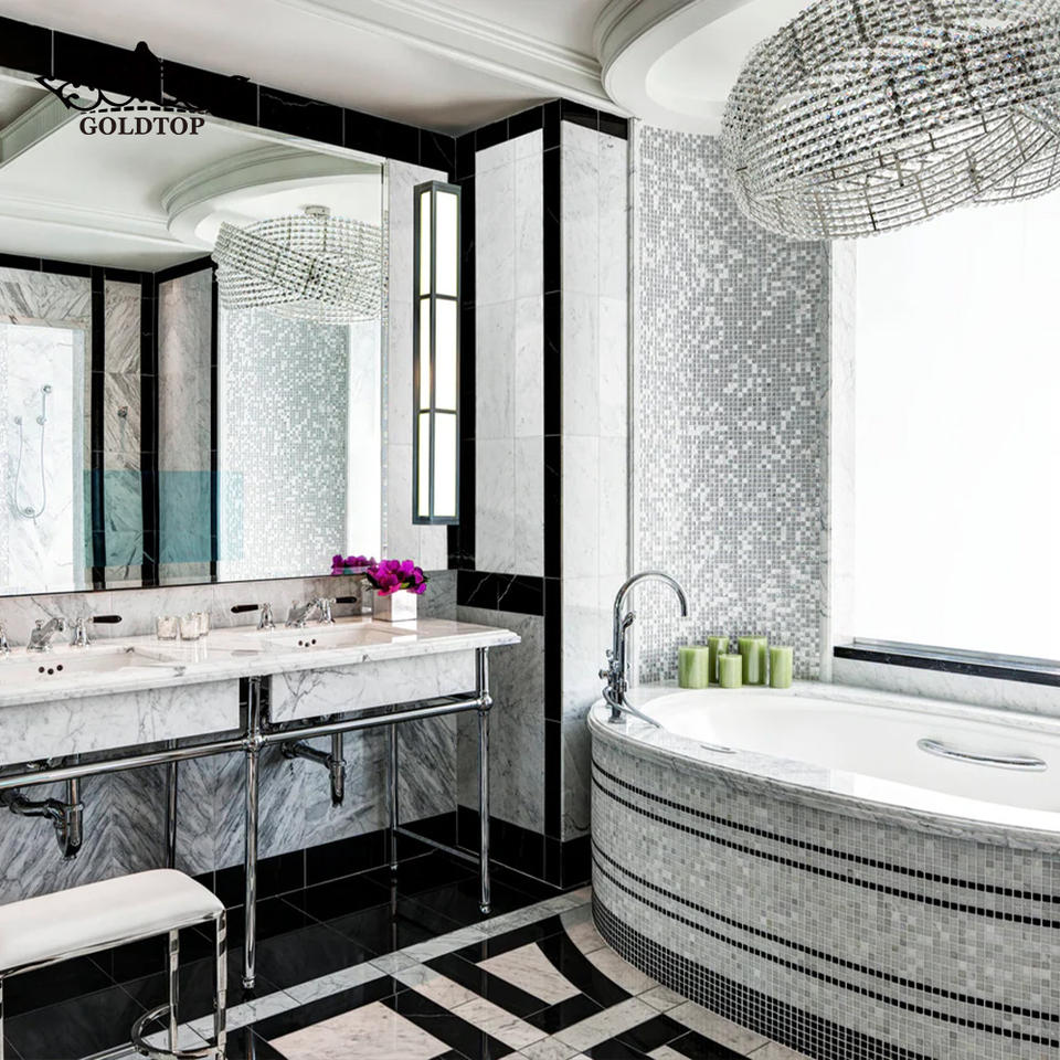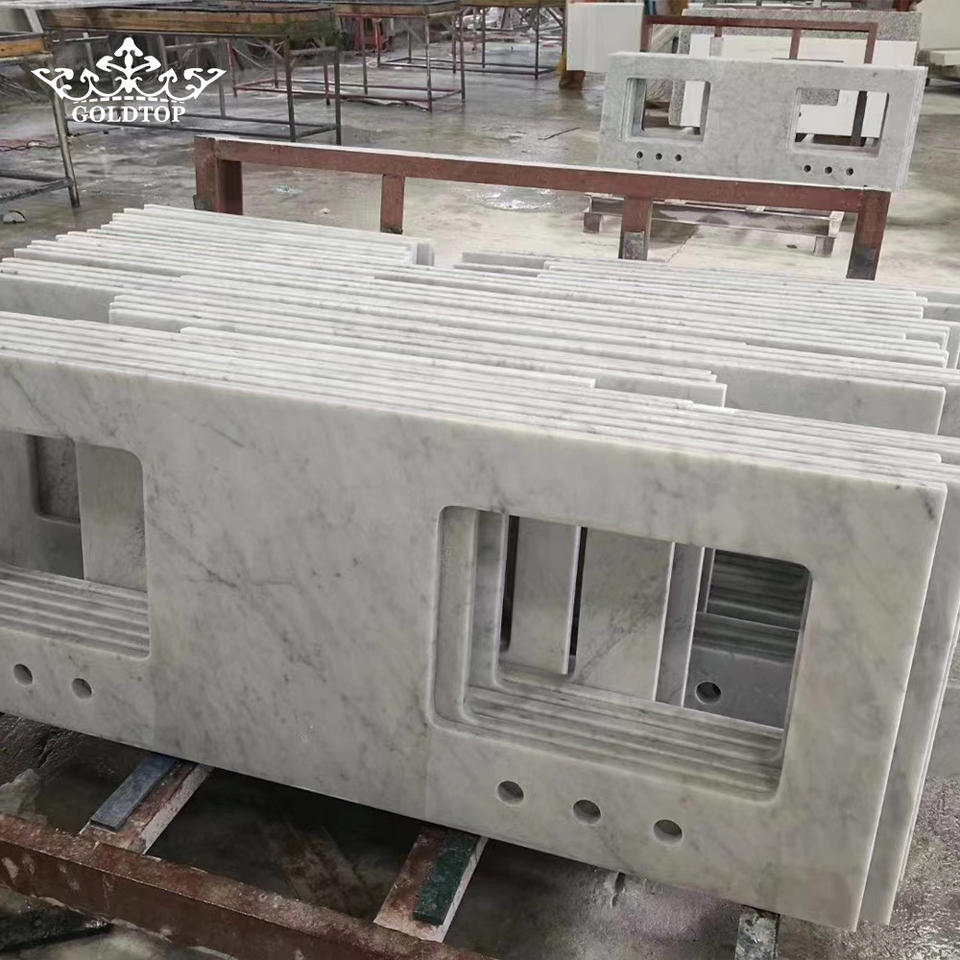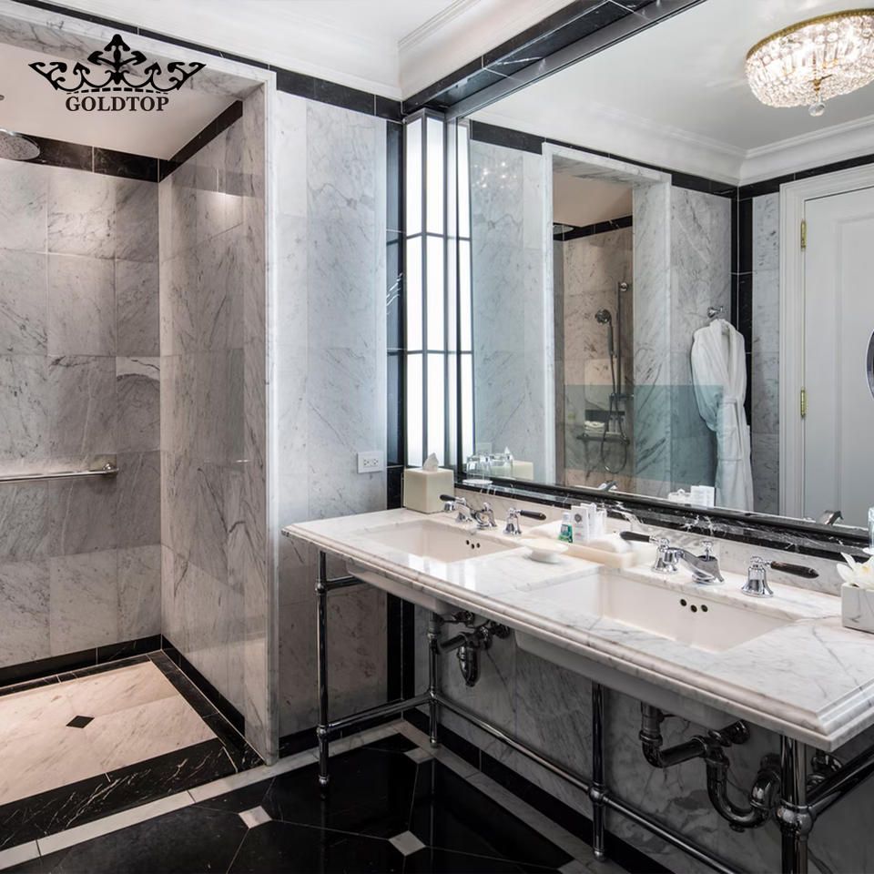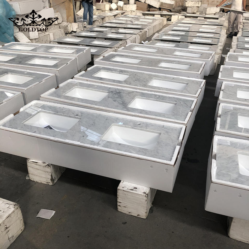 ท็อปห้องน้ำหินอ่อนคาร์ราร่าสีขาวโกลด์ท็อป ทันสมัย เป็นมิตรกับสิ่งแวดล้อม กันน้ำ สำหรับโรงแรม ขายส่ง