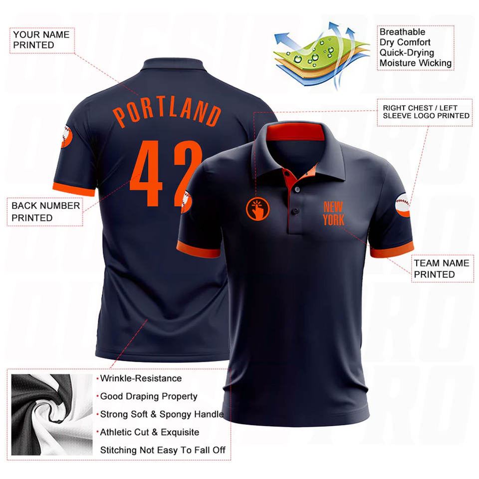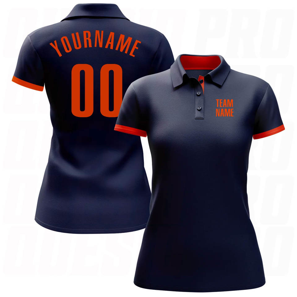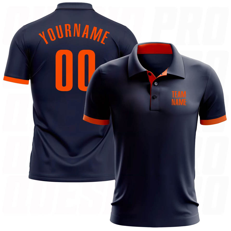 เสื้อโปโลกอล์ฟสีกรมท่า-ส้ม สำหรับนักกอล์ฟ ผู้ผลิตเสื้อผ้ากอล์ฟ ออกแบบโลโก้แบรนด์ตามสั่ง เสื้อยืดโปโลกอล์ฟสำหรับเล่นกีฬา