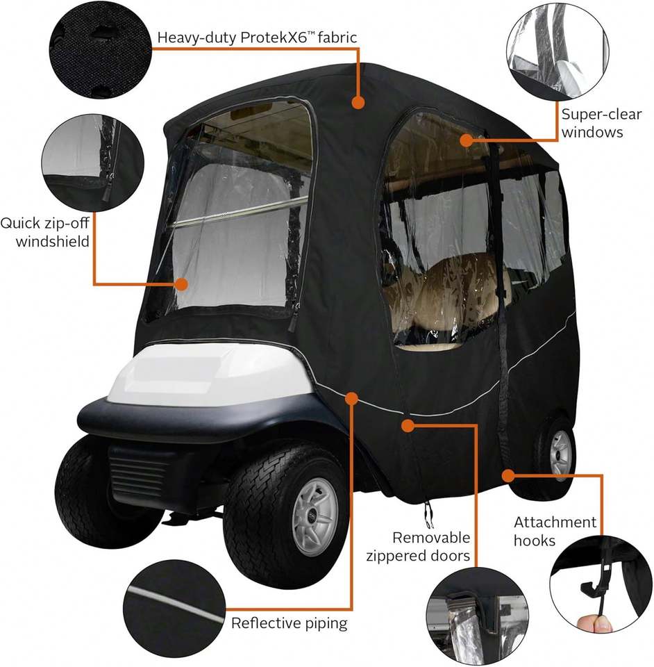 Golf Cart Deluxe Enclosure Golf Cart Rain Cover for Club 2 Passenger Fits Long Roof Dimensions Zippered Doors Resists Shrink