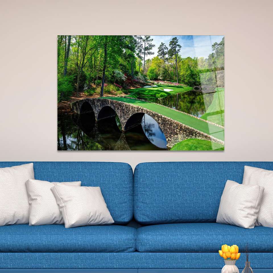 ภาพพิมพ์บนผ้าใบสนามกอล์ฟ: ภาพศิลปะภูมิทัศน์สะพานหิน, งานศิลปะกระจกนิรภัย