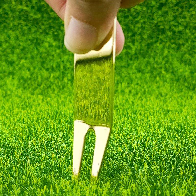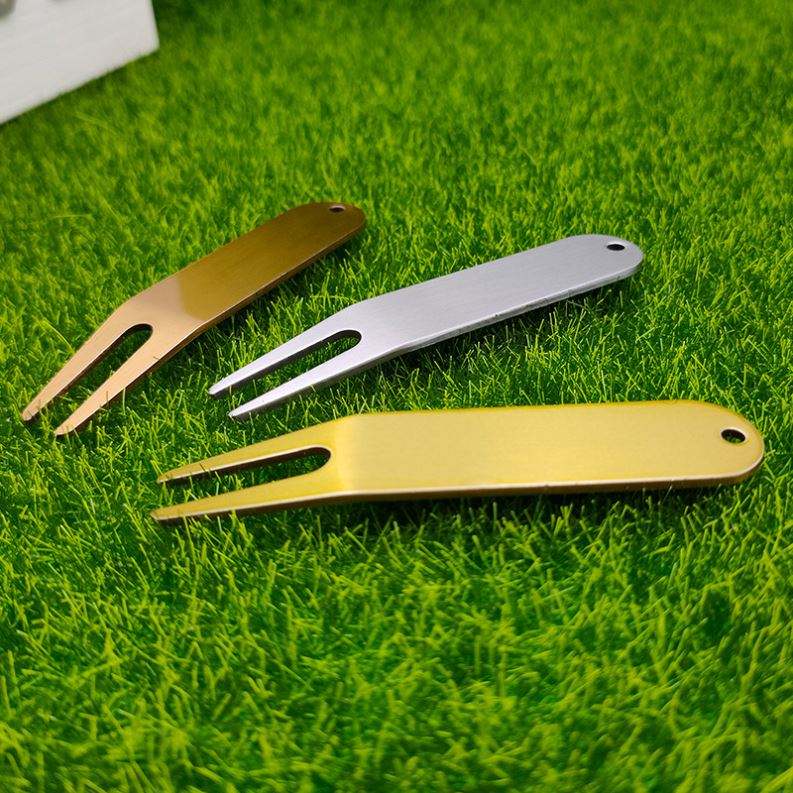 ส้อมกอล์ฟอุปกรณ์เสริมเครื่องมือซ่อมสนามหญ้าโลหะเงินสีเขียวส้อมสีเงินไม่มีในสต็อกขายส่ง