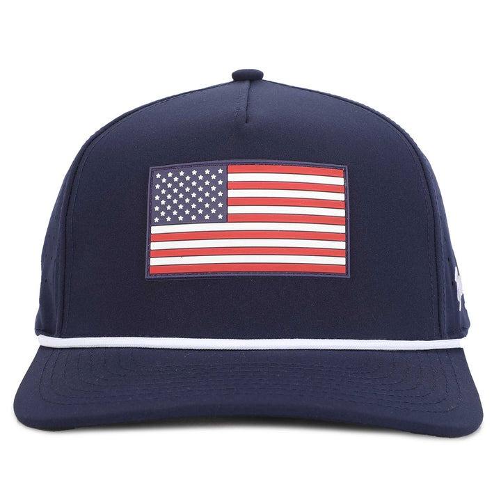 หมวกกอล์ฟ หมวกแก๊ป ปักโลโก้ตามสั่ง แผ่นยาง PVC ลายธงชาติอเมริกา หมวกกีฬา ตัดด้วยเลเซอร์ รูระบายอากาศ กันน้ำ หมวกเบสบอล 5 ชิ้น