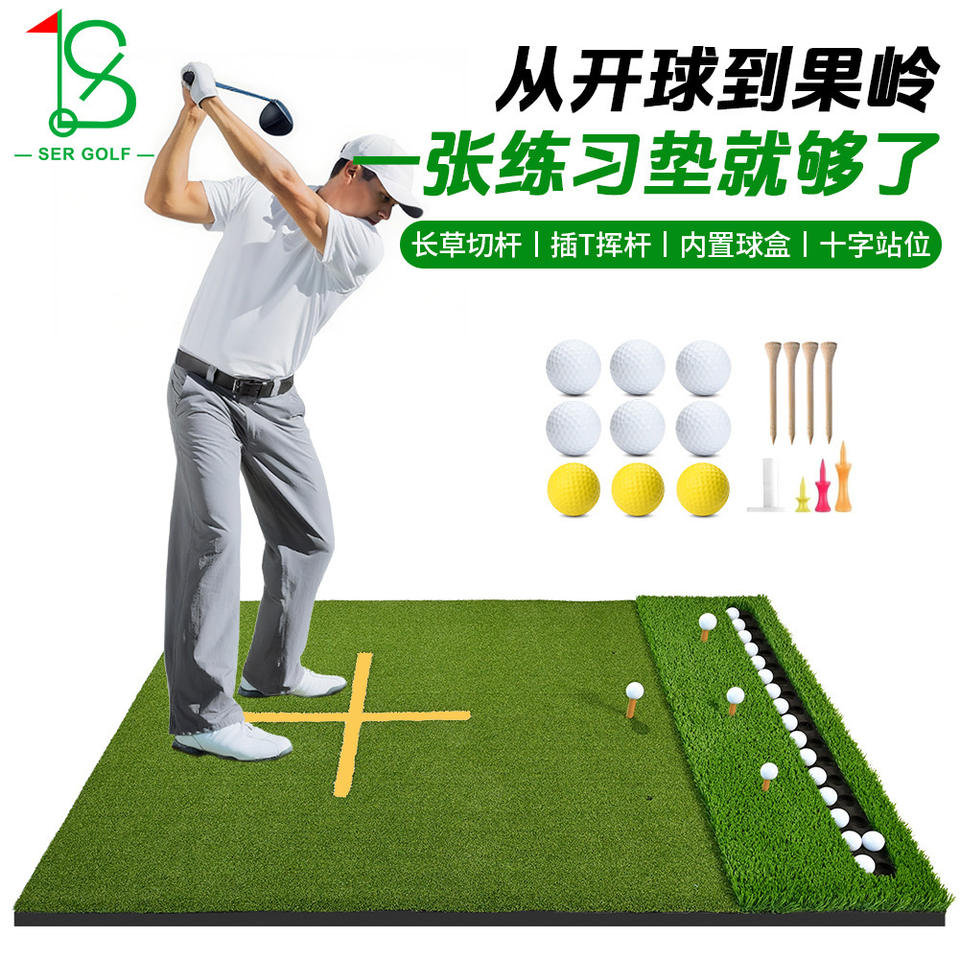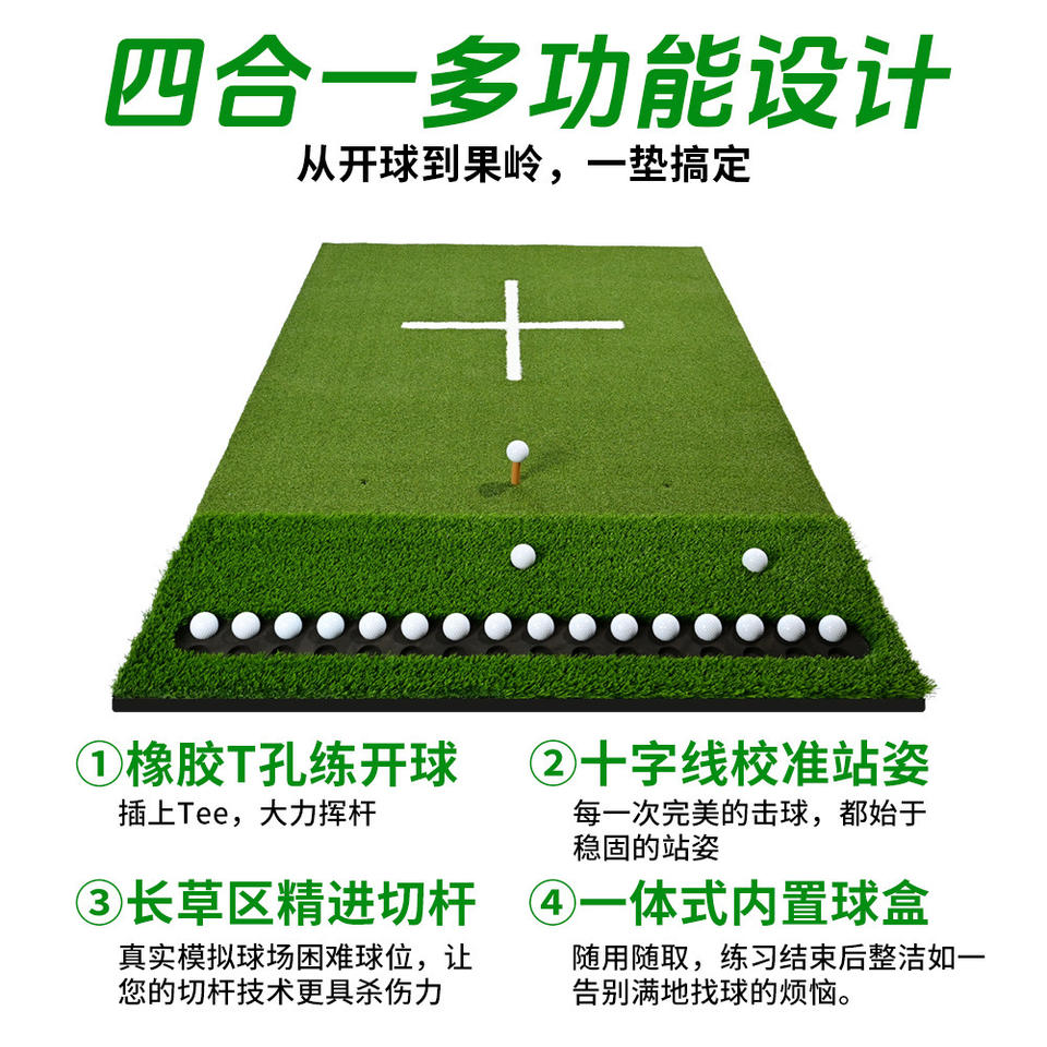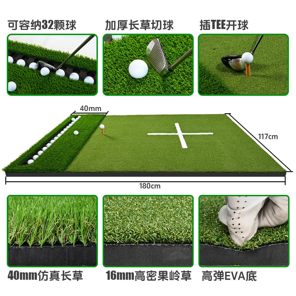 เสื่อตีกอล์ฟ 180x117 ซม. พร้อมที่วางลูกและช่องวางที สำหรับฝึกซ้อมที่บ้าน