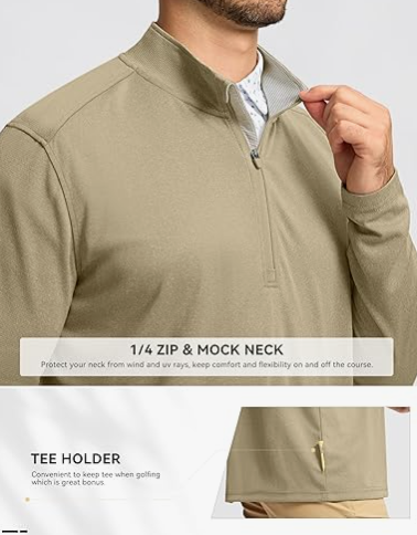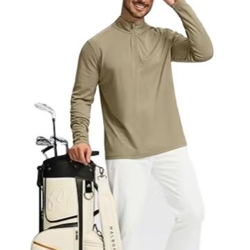 เสื้อกอล์ฟคอซิปสำหรับผู้ชาย คอกลม ผ้าฝ้าย 100% น้ำหนักเบา ป้องกันแสงแดด แขนยาว แห้งเร็ว ระบายอากาศได้ดี