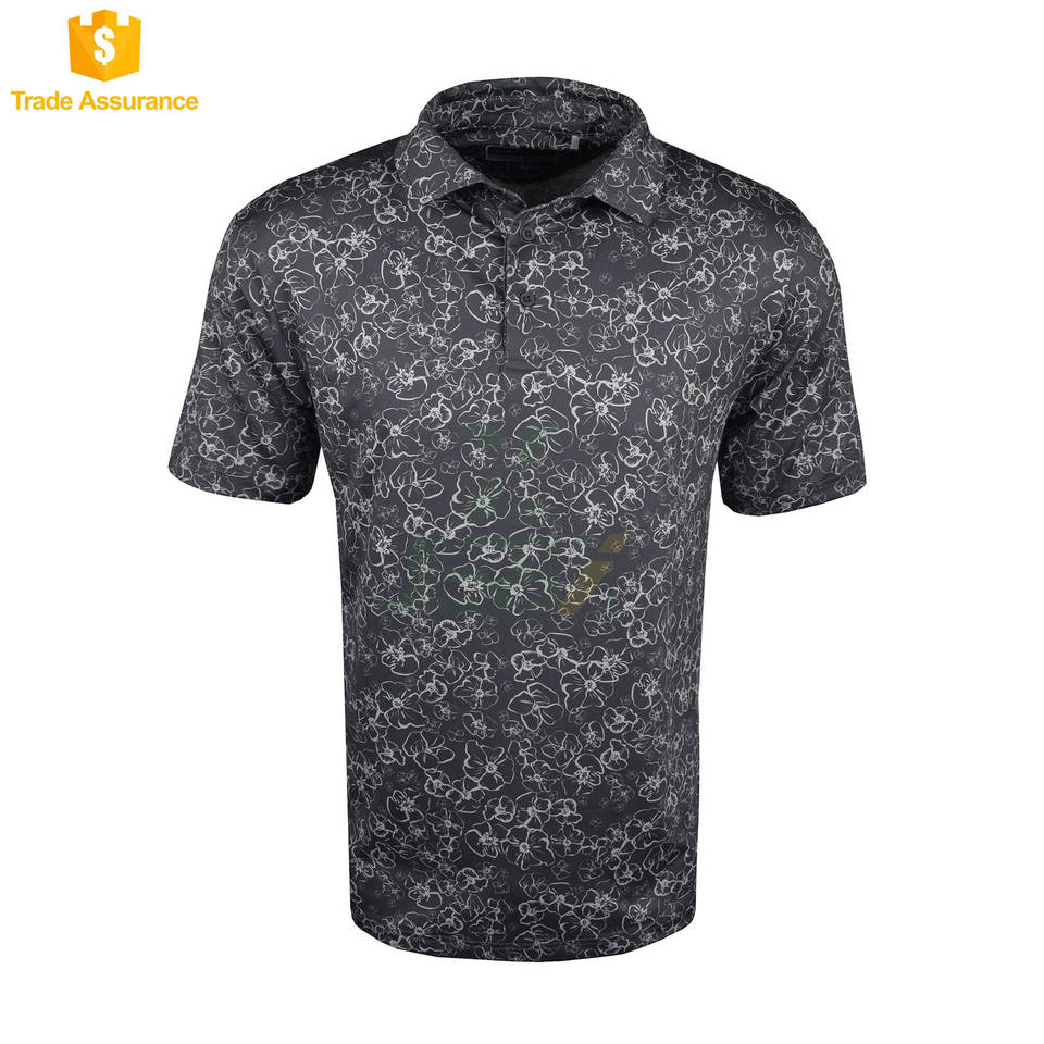เสื้อกอล์ฟสปอร์ตสำหรับผู้ชาย, เสื้อพิมพ์ลายดอกไม้มีกระดุมปิดปรับได้แขนสั้นผ้าถักระบายอากาศได้ดีดูดซับความชื้น