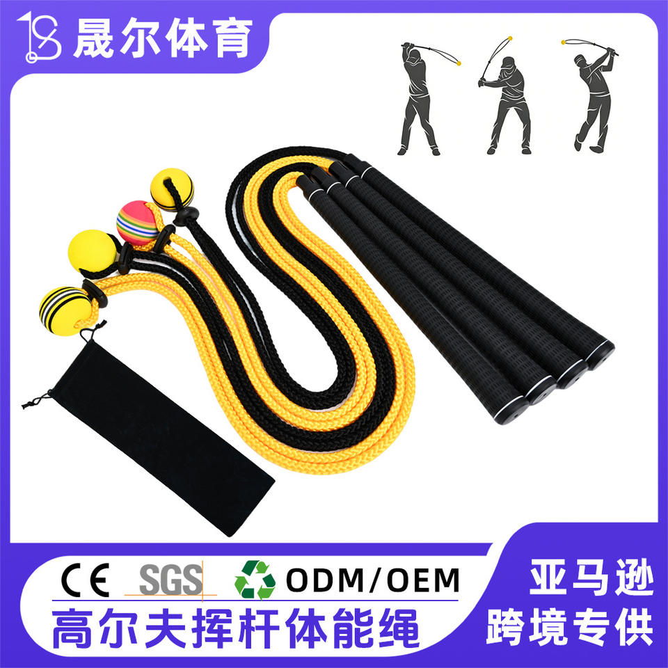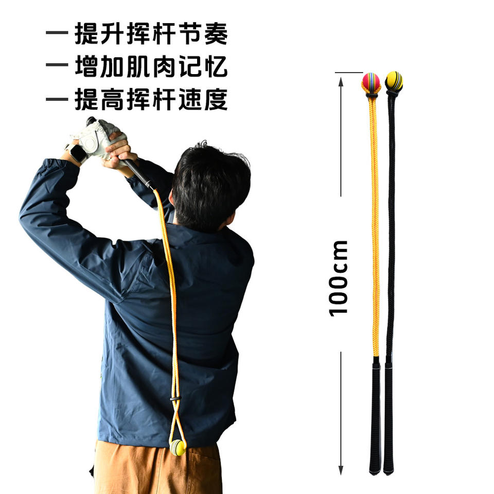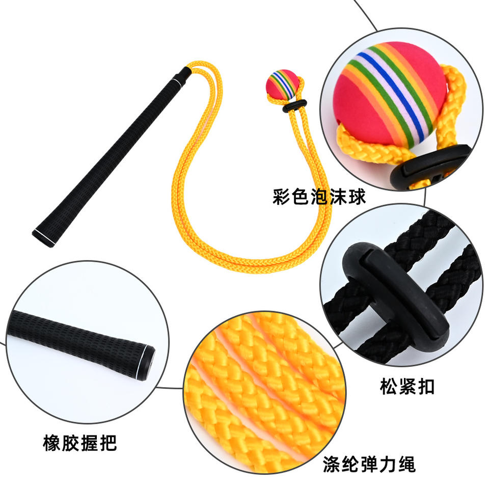 เชือกฝึกซ้อมวงสวิงกอล์ฟ สีเหลือง สีดำ ด้ามจับยาง หัวพลาสติก อุปกรณ์ช่วยฝึกซ้อม ใช้ได้ทั้งมือซ้ายและขวา วัสดุโพลีเอสเตอร์ SER0121