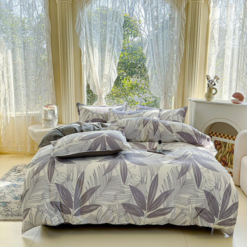 Gongmian ผ้าฝ้ายสองด้านกันไรฝุ่น300TC ชุดผ้านวมสี่ชิ้นทันสมัยผ้าปูที่นอนเข้ารูปสี่ฤดู