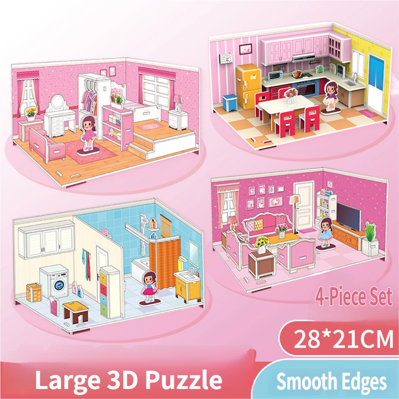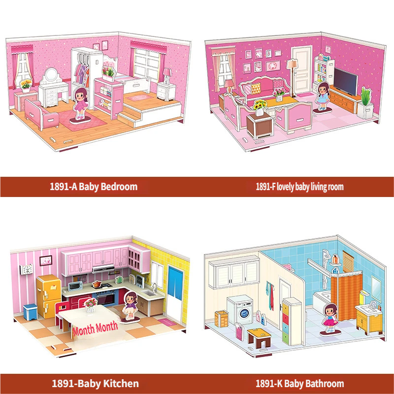 บ้านตัวต่อ 3 มิติ Good Baby ของเล่นประกอบเองจากกระดาษ สำหรับเด็กผู้หญิง ของขวัญเสริมสร้างพัฒนาการและความคิดสร้างสรรค์ พร้อมห้องครัว ห้องน้ำ ห้องนอน และห้องนั่งเล่น