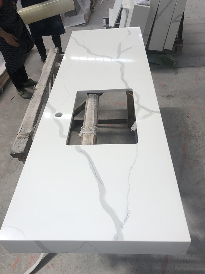 ชื่อ:เทียม calacatta ควอตซ์สีขาวเคาน์เตอร์ด้านบน/โต๊ะเครื่องแป้ง
