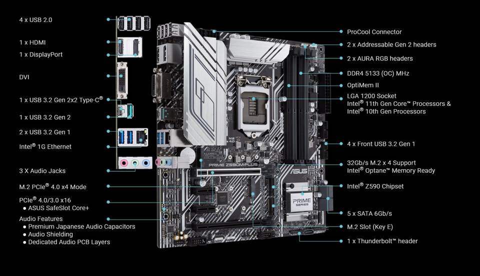 DVI, แสดงพอร์ต, อีเธอร์เน็ต, HDMI, Pci- expressx16, SATA, USB 2.0, USB 3.0, USB3.1, M.2