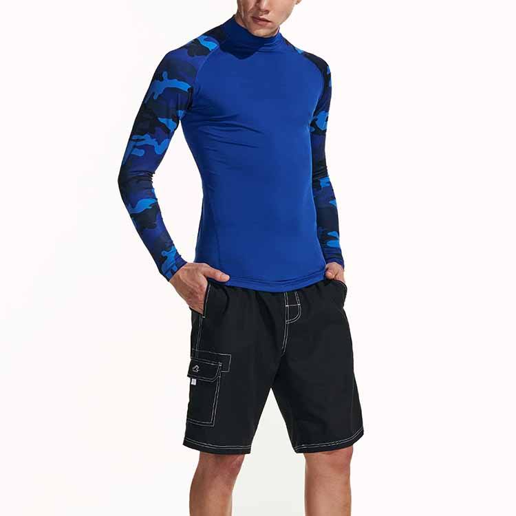 ชุดป้องกันผดผื่นพิมพ์ลายพรางของผู้ชายรัดรูปแห้งเร็วชุดกีฬาออกกำลังกายเล่นฟิตเนส