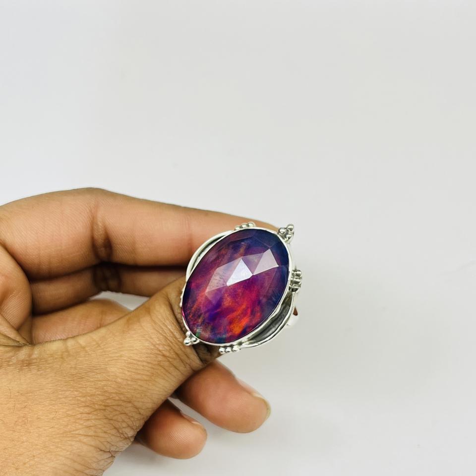แหวนโอปอลทรงหลังเบี้ยลายรุ้งโอปอลไฟดีแหวนโอปอลเอธิโอเปียตัดดอกกุหลาบโอปอลโอปอลโอปอลแบบคู่ทำอัญมณีหลวมสำหรับทำเครื่องประดับเงิน