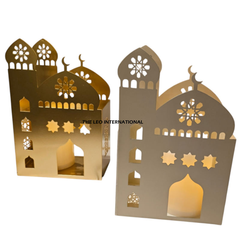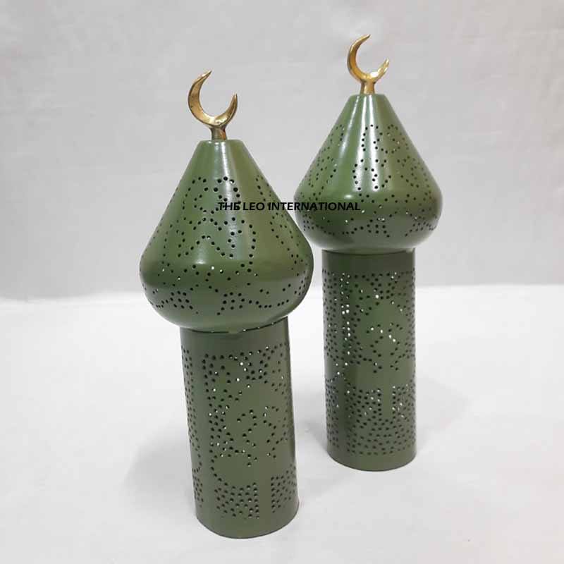 โคมไฟตกแต่งรอมฎอนอิสลามสวยงาม โคมไฟโลหะสีเขียวสำหรับตั้งโต๊ะ