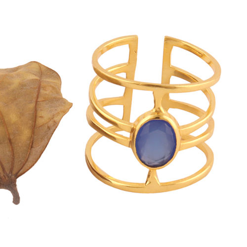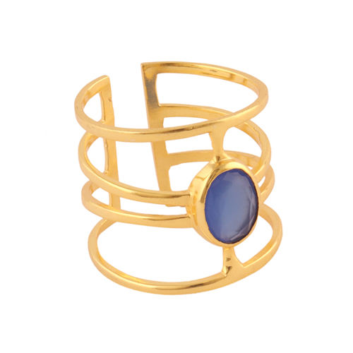 แหวนพลอยหินโมราสีฟ้าทรงรี,แหวนอัญมณี24K ทำจากทองเหลืองชุบทองแฮนด์เมดปรับได้ของขวัญสำหรับผู้หญิง