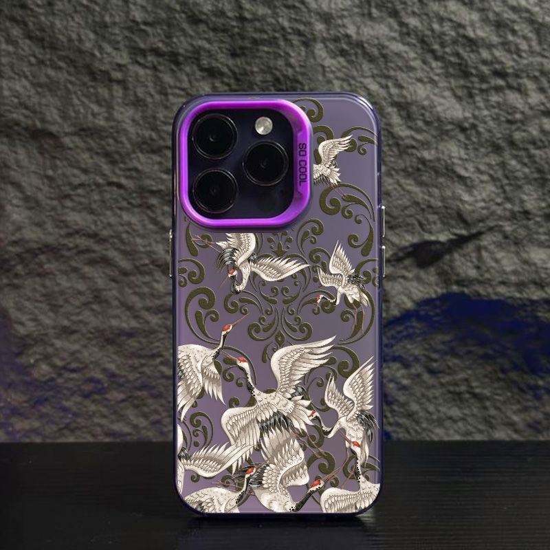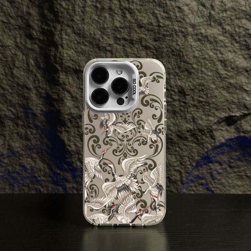 เคสโทรศัพท์ TPU แข็งลายกระเรียนมงคล สำหรับ iPhone 15 16 Pro Max ป้องกันการกระแทก ฝาหลังเสริมความโชคดี
