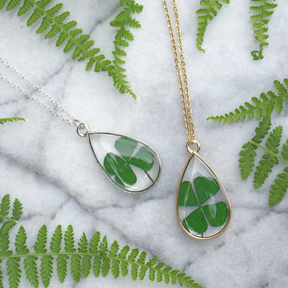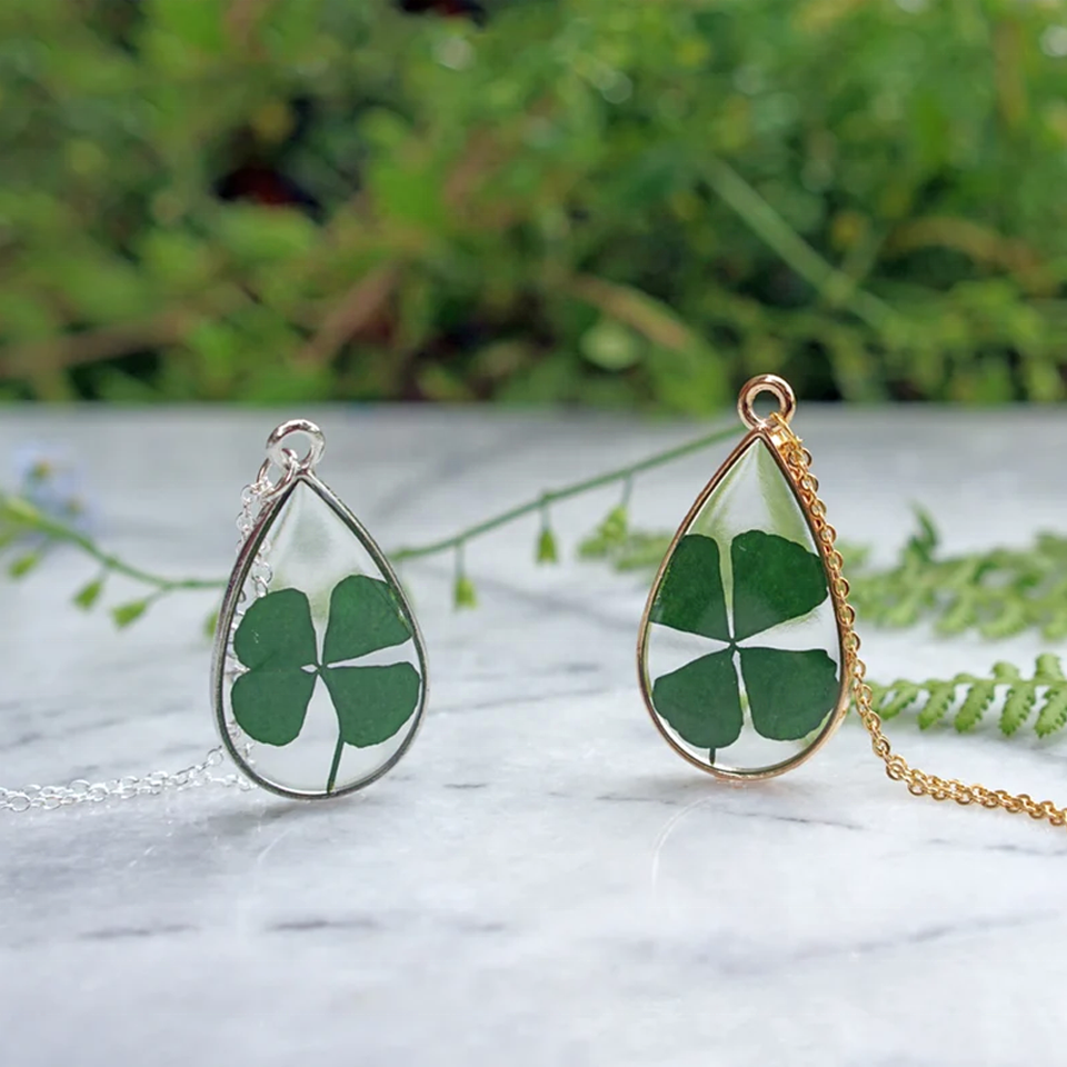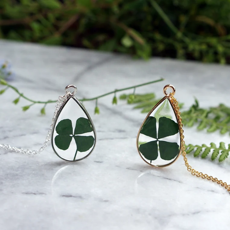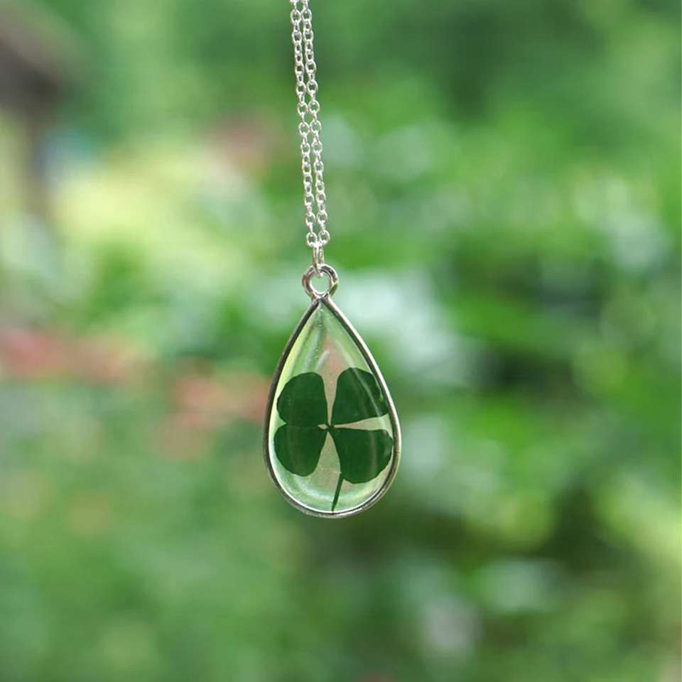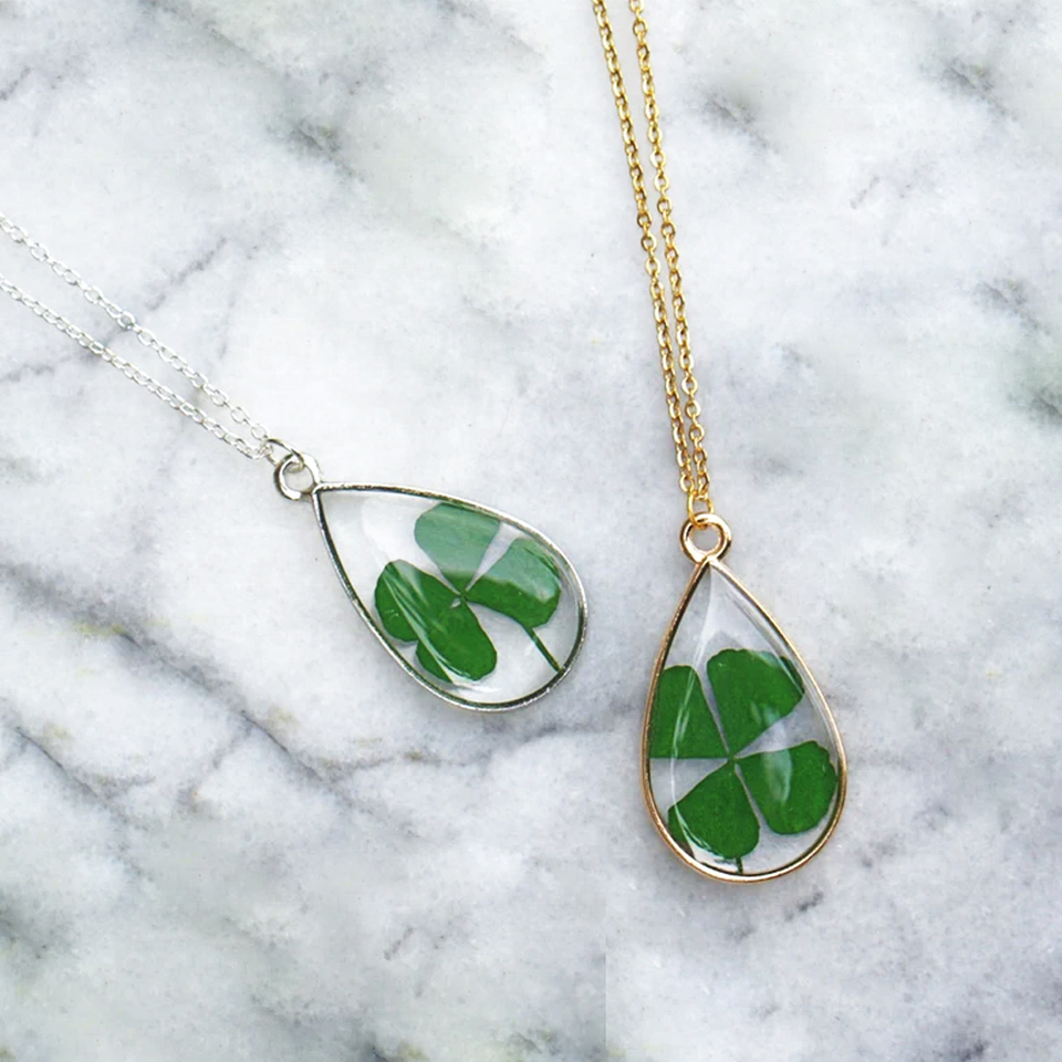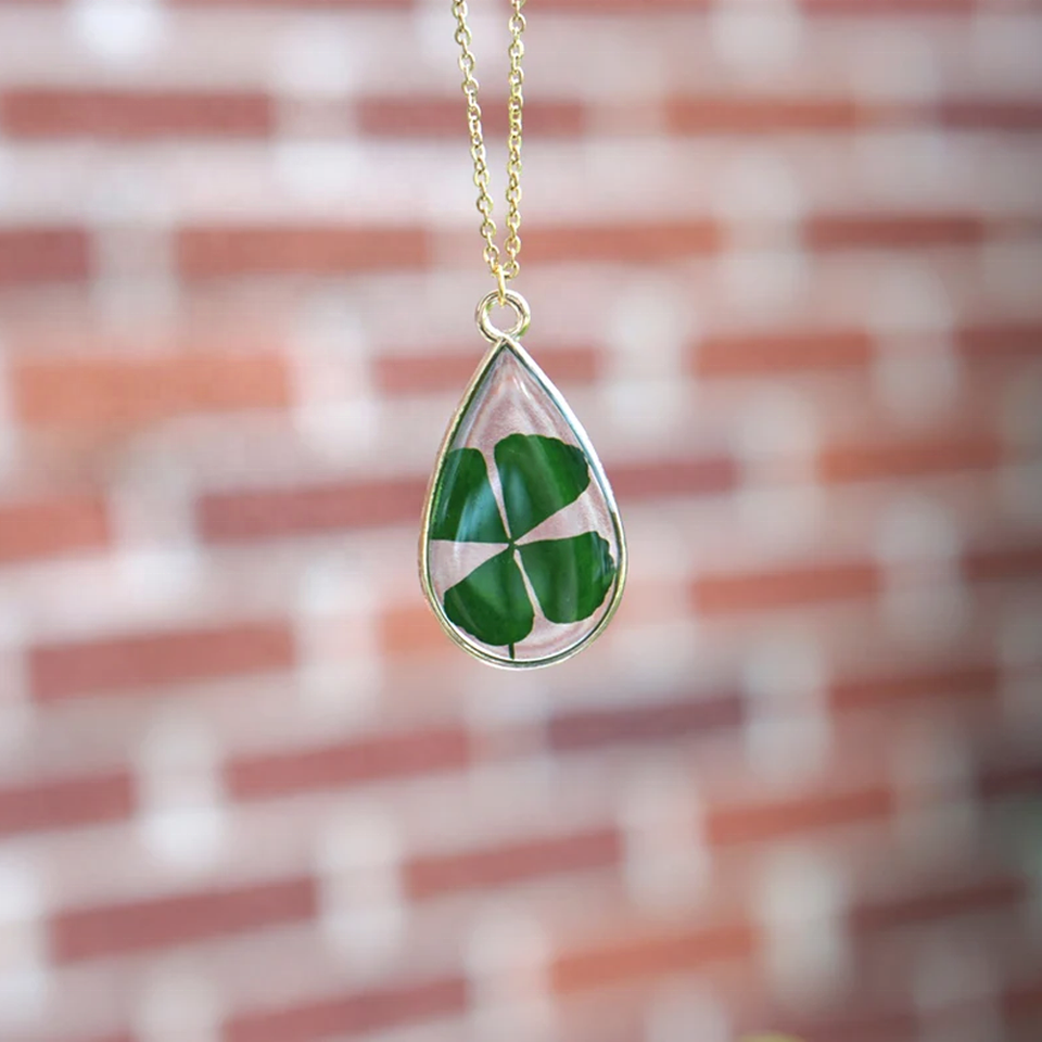 สร้อยคอจี้ดอกไม้ทำจากเรซินรูปใบโคลเวอร์สี่แฉกนำโชคสำหรับผู้หญิง