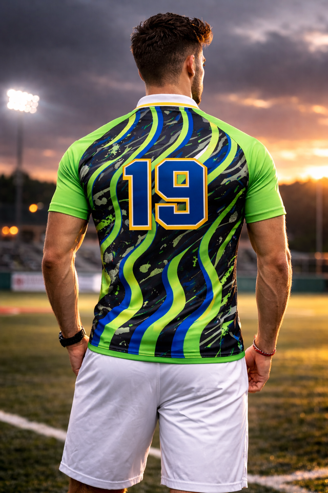 ตำแหน่งโลโก้:ด้านหน้า, ด้านหลัง, แขนเสื้อด้านซ้าย, แขนเสื้อด้านขวา, ขอบล่าง, หลังคอ
