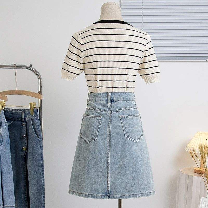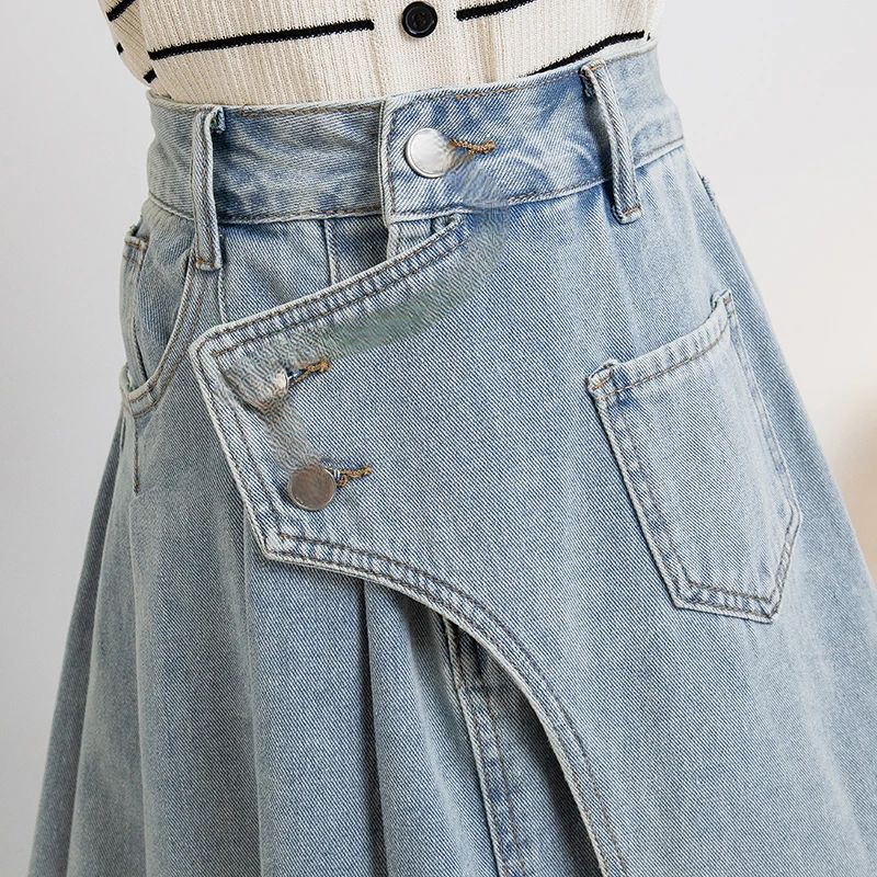 กระโปรงผ้ายีนส์สำหรับผู้หญิงกระโปรงผ้ายีนส์ป้องกันรอยยับของสินค้าขายดีปรับแต่งได้ตามต้องการ