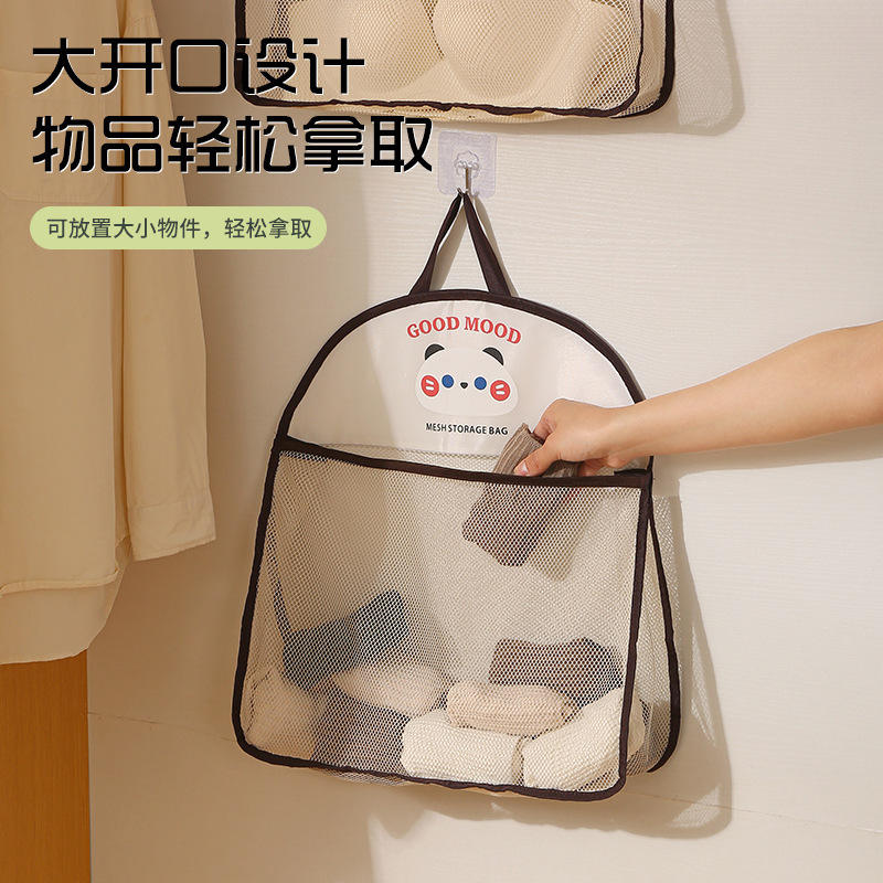 Good Mood Mesh Storage Bag Oval Hanging Organizer For Wardrobe Door With Cat Panda Design Multipurpose Clothing Organizer