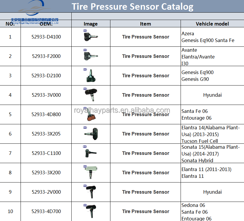 52933F2000เซ็นเซอร์ความดันลมยาง52933-F2000 TPMS สำหรับ Kia สำหรับ Hyundai