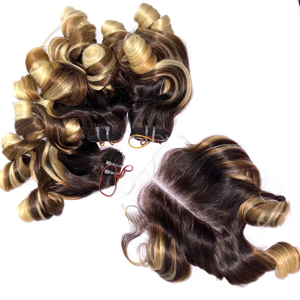 ชุดผมต่อผมมนุษย์สีไฮไลต์สำหรับเด็กผมหยิกจากเวียดนามชุด2025ปิด