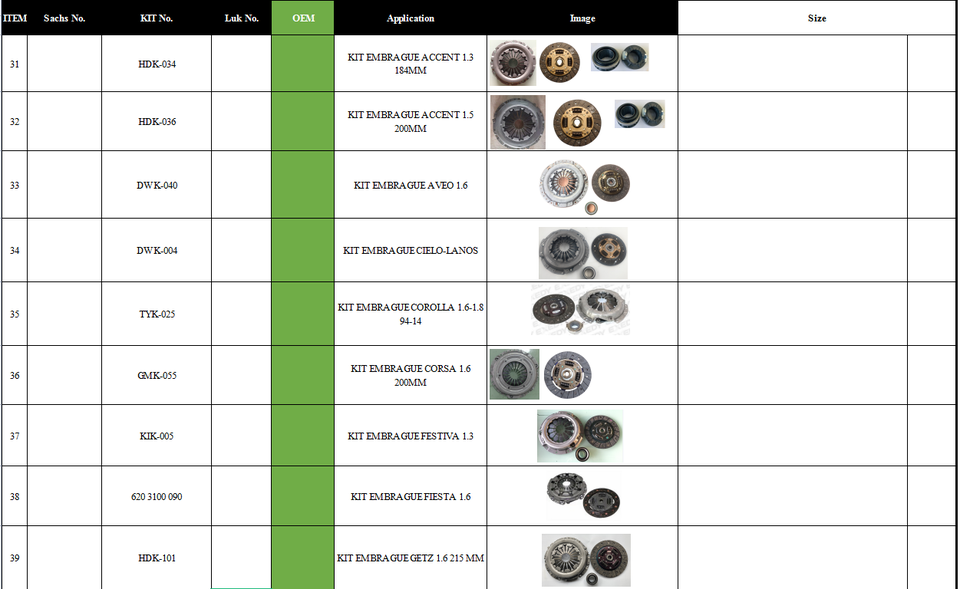 | ชิ้นส่วนประกอบรถยนต์ | แบบ | ปี | เครื่องยนต์ |
