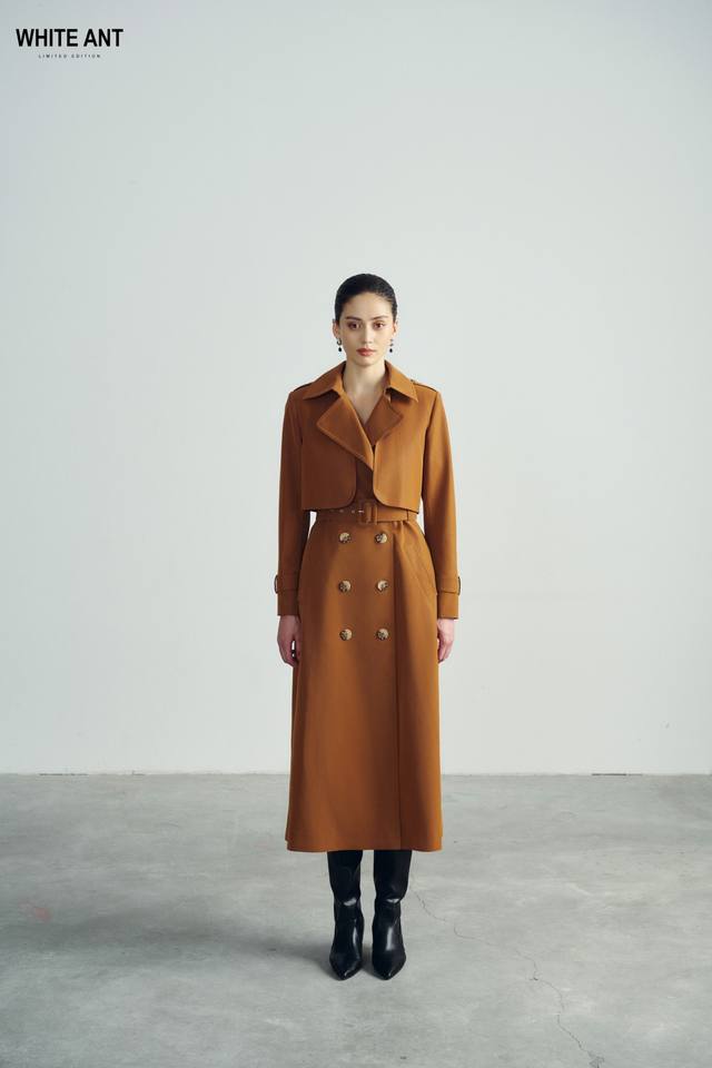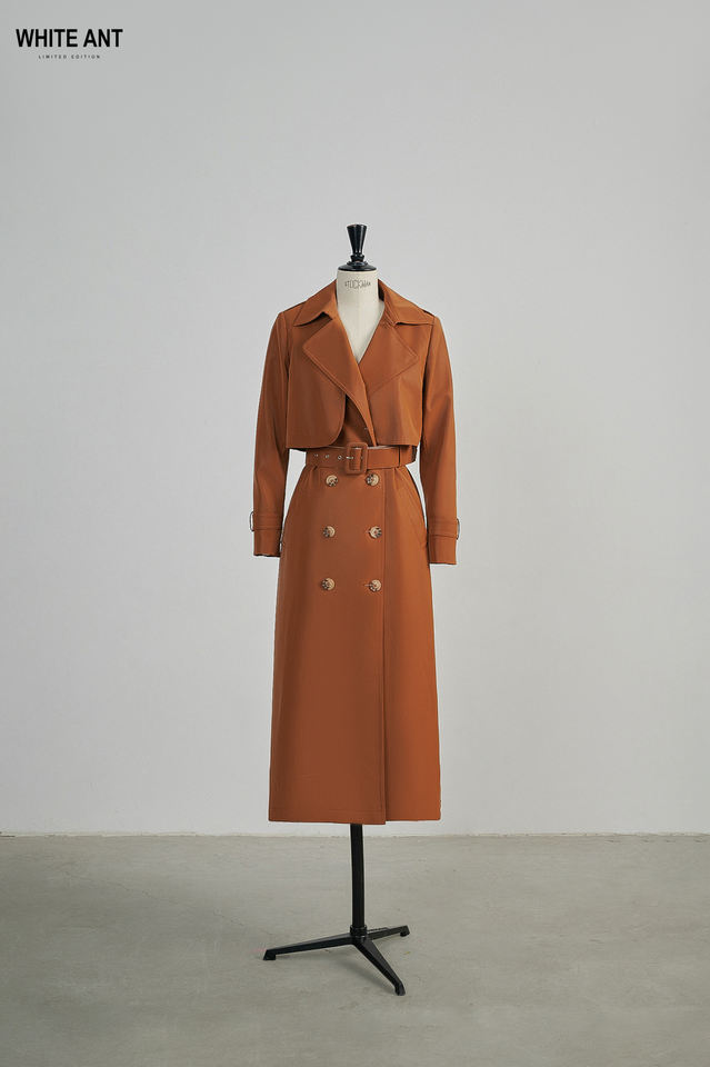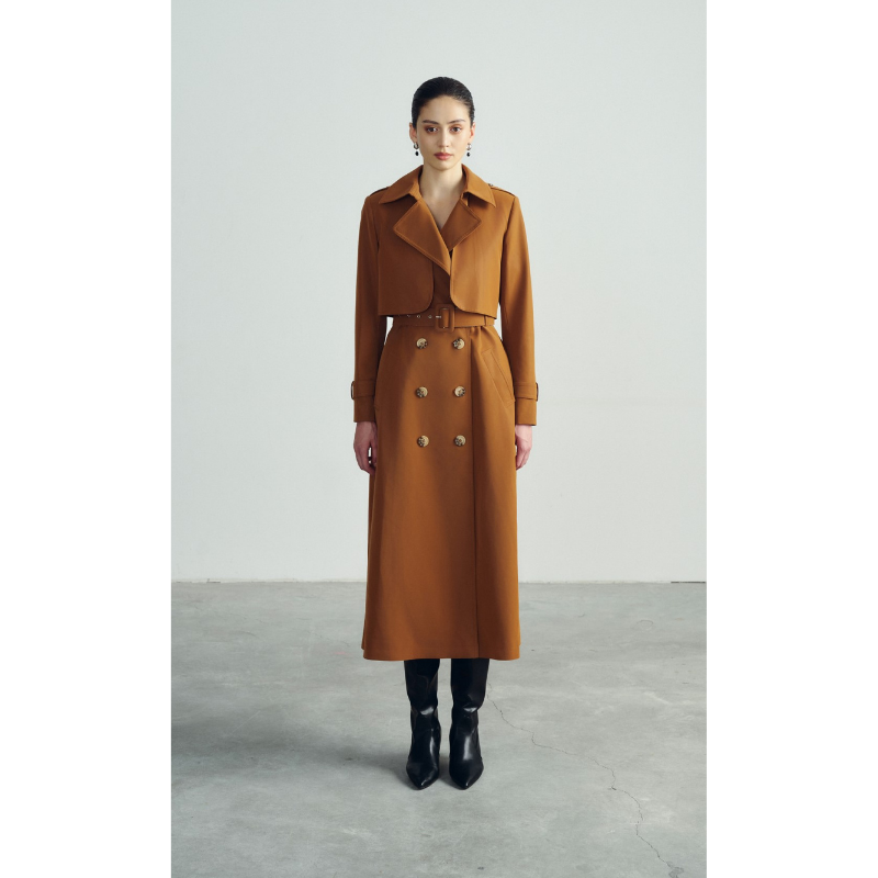 Good Price High Fashion SARAH TRENCH COAT Front Buttons Brown Women's Trench Coats 45%Rame 55%Polyurethane WHITEANT Vietnam