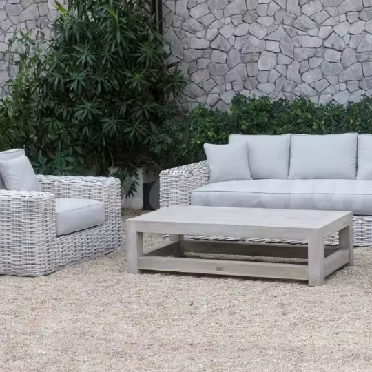 ราคาดีออกแบบหรูหราเรียบง่ายสีขาวรอบหวายกรอบอลูมิเนียมโต๊ะไม้แบรนด์เวียดนามสําหรับโรงแรมรีสอร์ทลานสวน