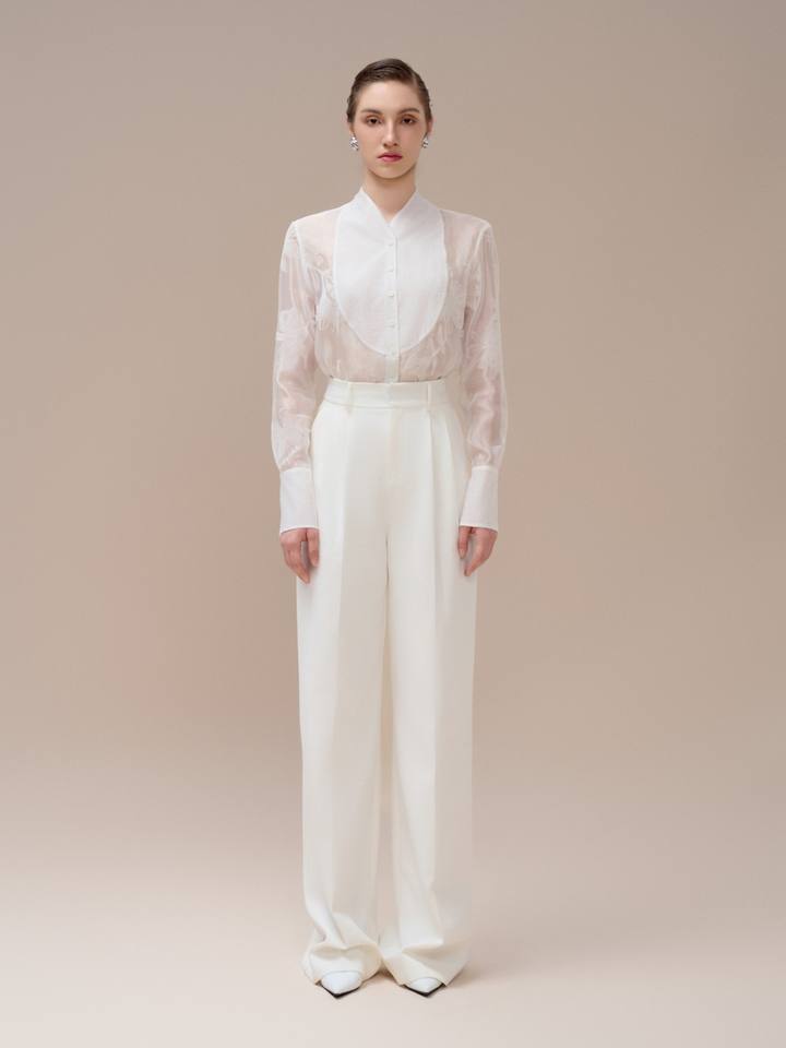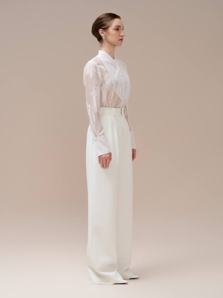 กางเกงขากว้างสไตล์ทางการสำหรับผู้หญิงกางเกงลำลองผ้าขาวเป็นมิตรกับสิ่งแวดล้อม