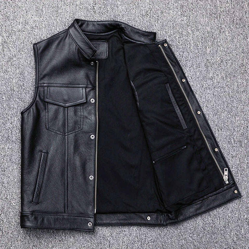 เสื้อกั๊กหนัง100% สำหรับผู้ชายระบายอากาศได้ดี
