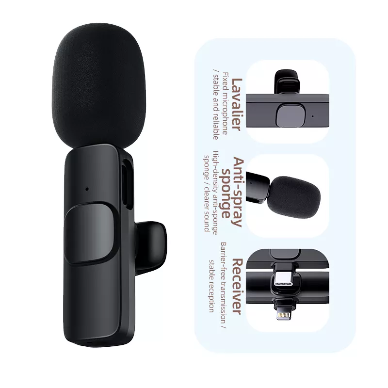 ไมโครโฟน2 in 1, K8ไร้สาย K9ไมโครโฟนลาวาเลียร์ไมโครโฟนแบบพกพาสีดำสมาร์ทโฟน mamen