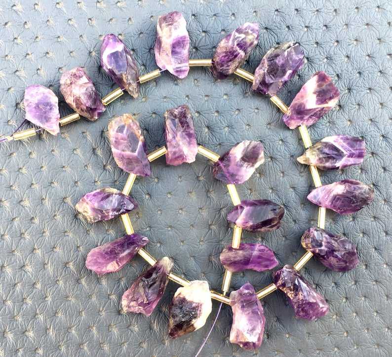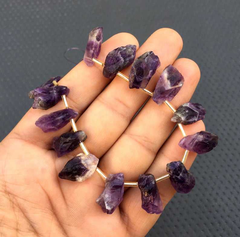 หินอเมทิสต์ชีวภาพ21ชิ้นเจาะด้านบนอัญมณีหยาบรูปร่างไม่สม่ำเสมอเครื่องประดับแฮนด์เมด