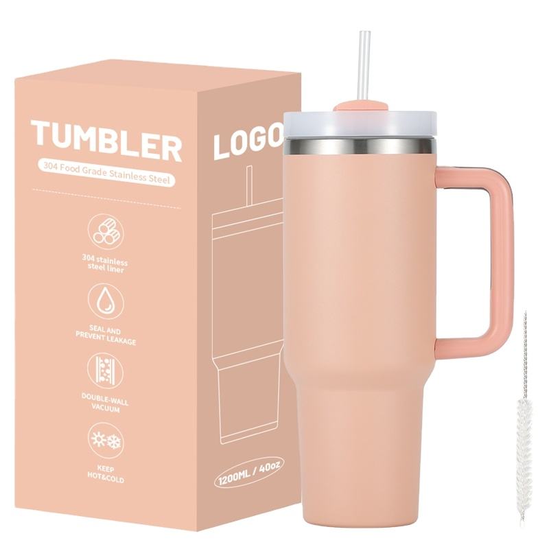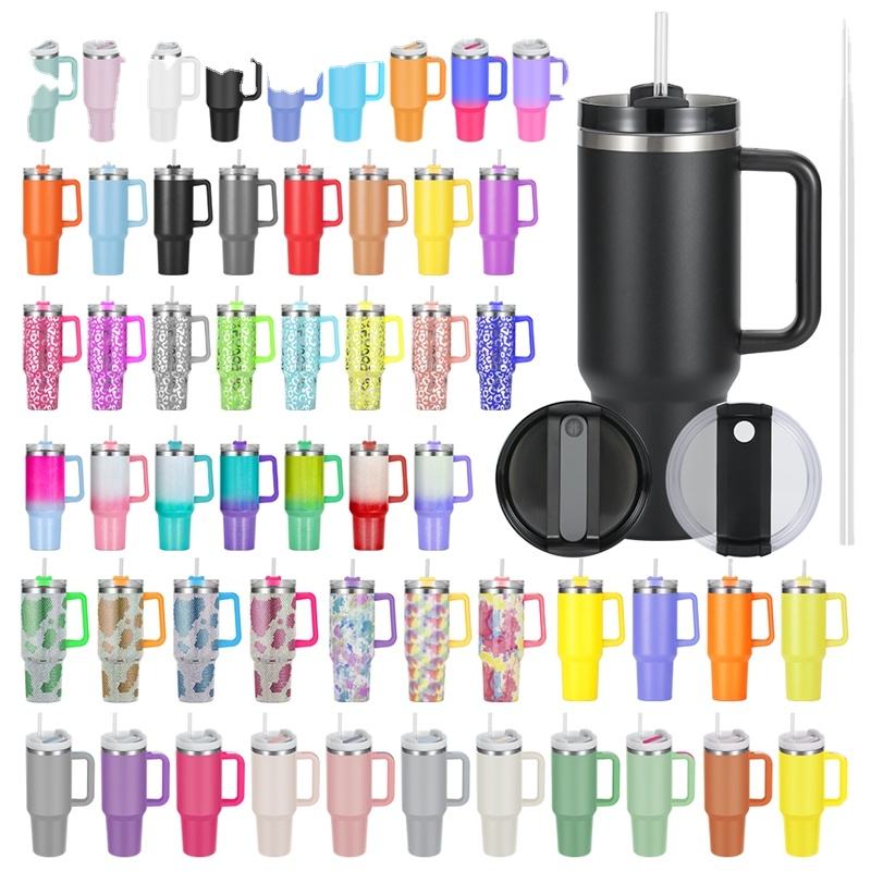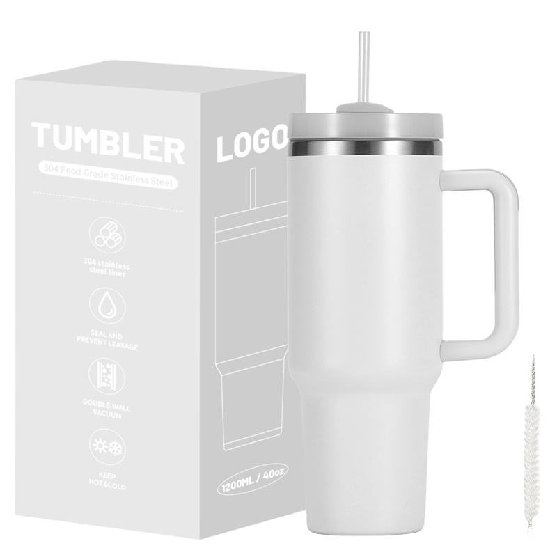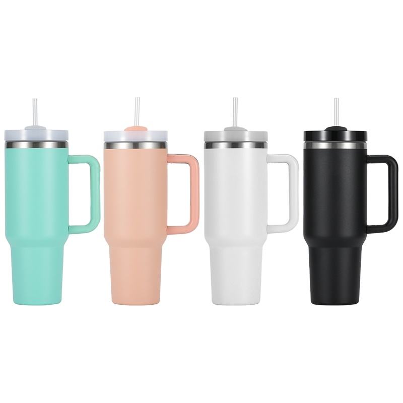 แก้วกาแฟคุณภาพดีขนาด 40 ออนซ์ แก้วน้ำสแตนเลสแบบพกพาพร้อมหลอดและแปรงทำความสะอาด ขวดน้ำสำหรับเดินทาง