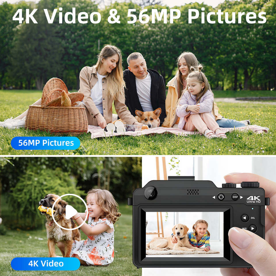 กล้องดิจิตอล DSLR คุณภาพดี 4K 56MP ซูมดิจิตอล 18 เท่า เซ็นเซอร์ CMOS พร้อม WiFi โฟกัสคงที่ ตรวจจับใบหน้า สำหรับการถ่ายวิดีโอบล็อกและการถ่ายภาพ